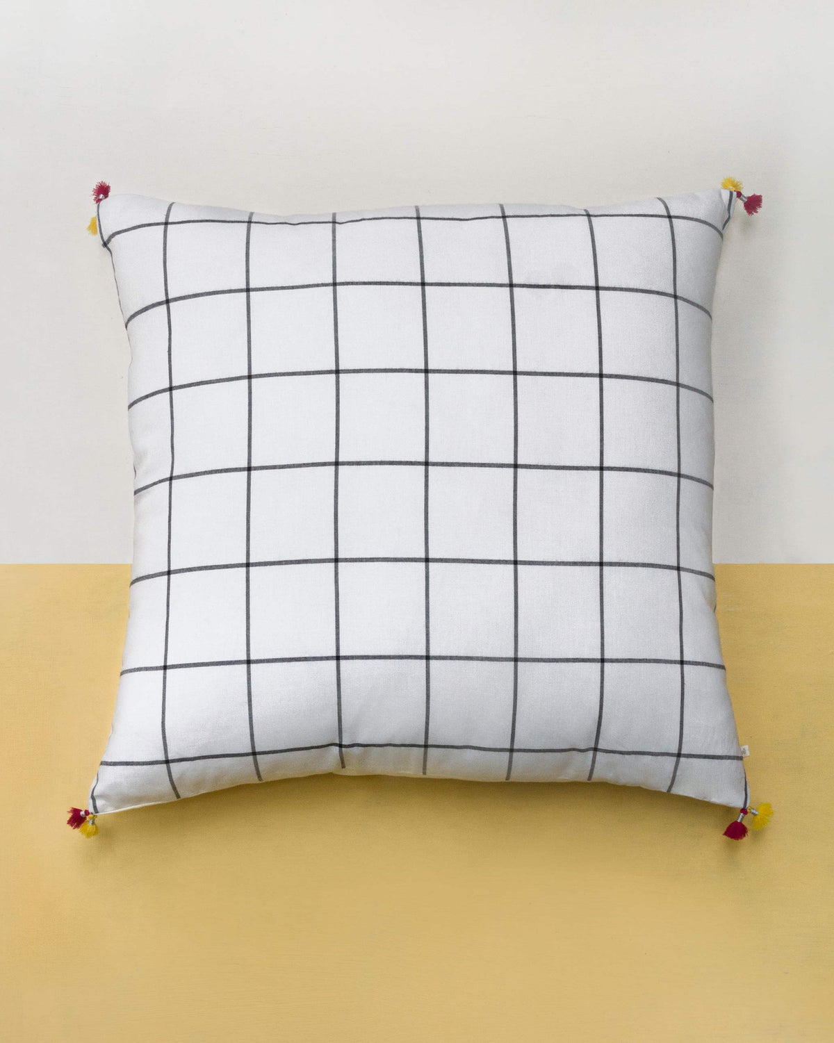 - Geoffrey Bawa's work underpins this check cushion with an envelope closure and ties