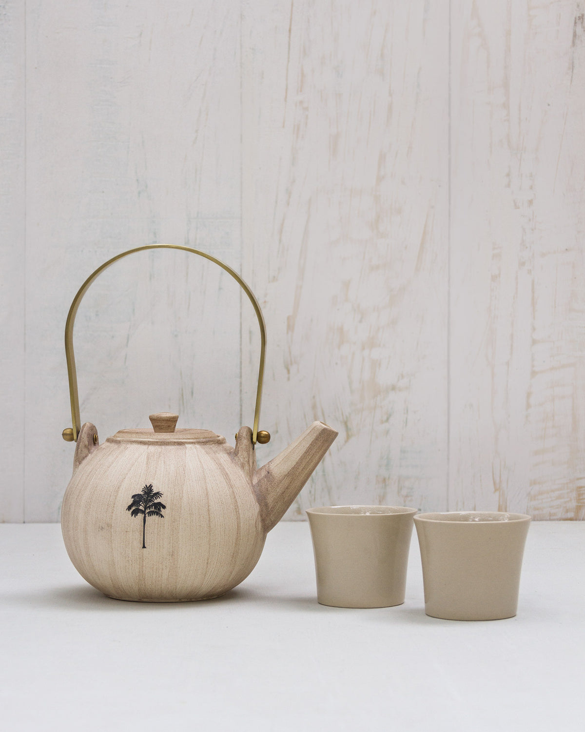 - In sturdy stoneware that's fashioned to house warm tea around a fireplace, this teapot comes with two accompanying teacups that are crafted simply and beautifully