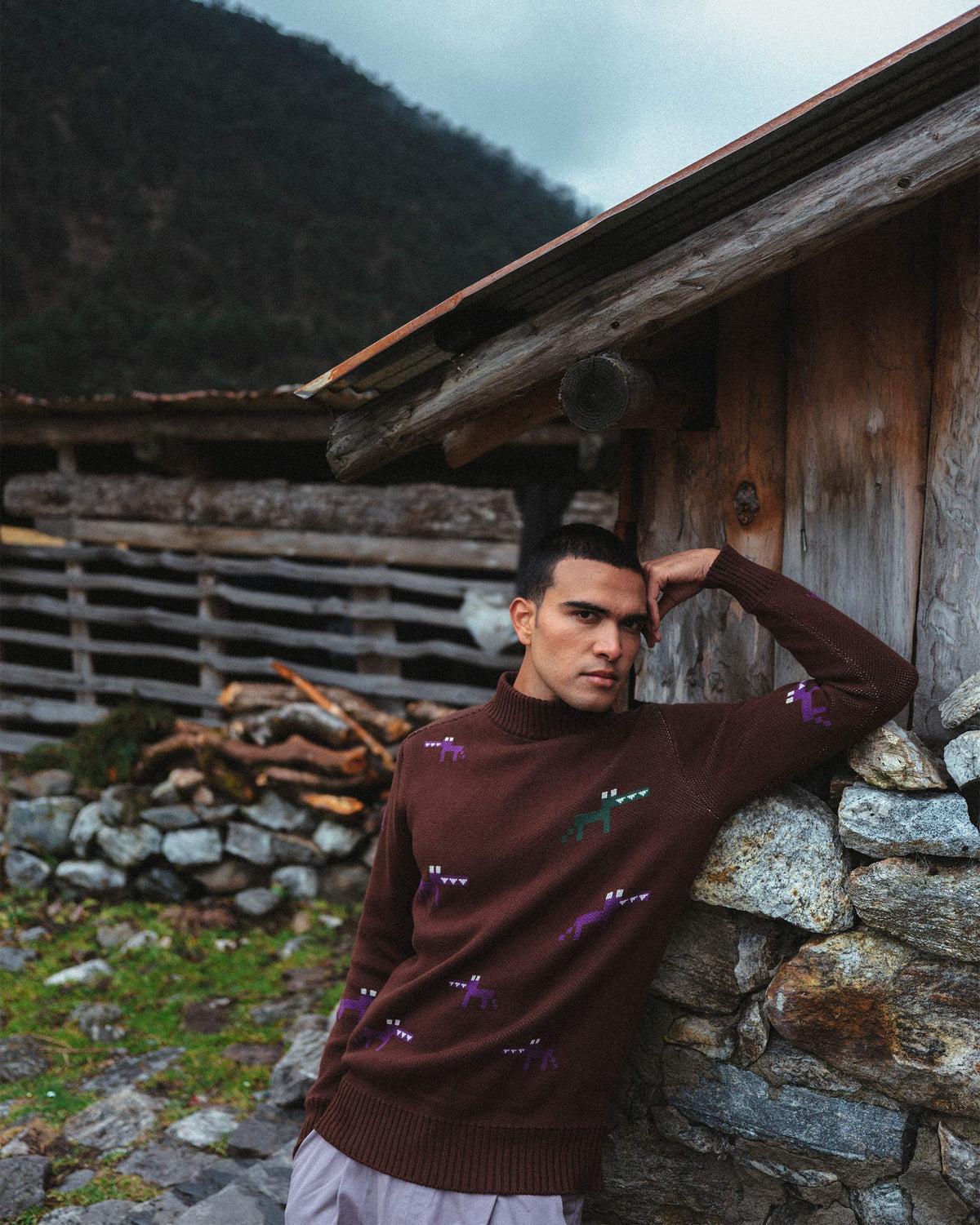 - Warm, grounded, and quietly playful, this brown crew neck brings an unexpected twist to winter staples.