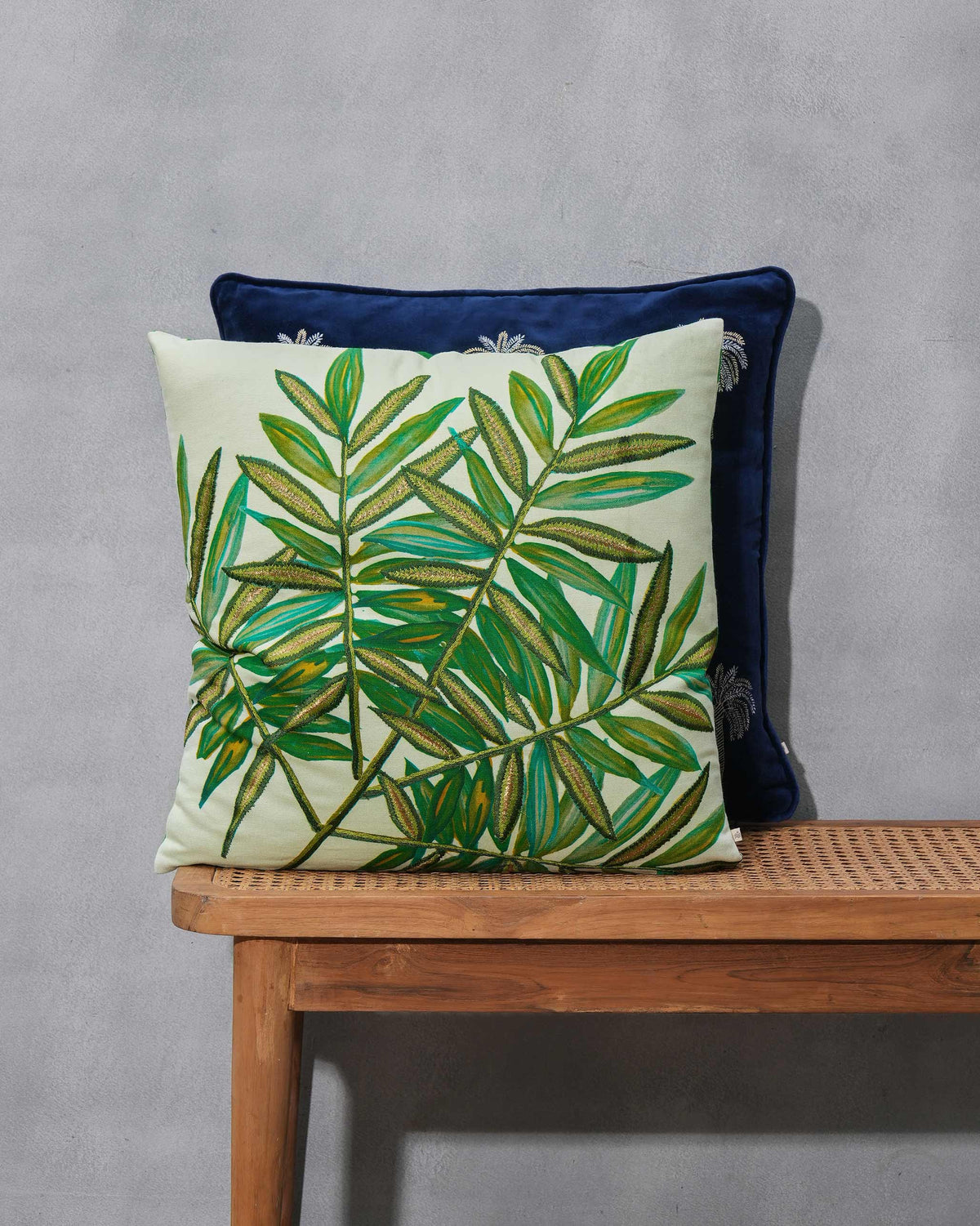 - The Desert Frond Cushion makes a statement in spaces with its stylised motifs of the abundant frond. The cushion is finished with knife edge detailing, adding to its design.