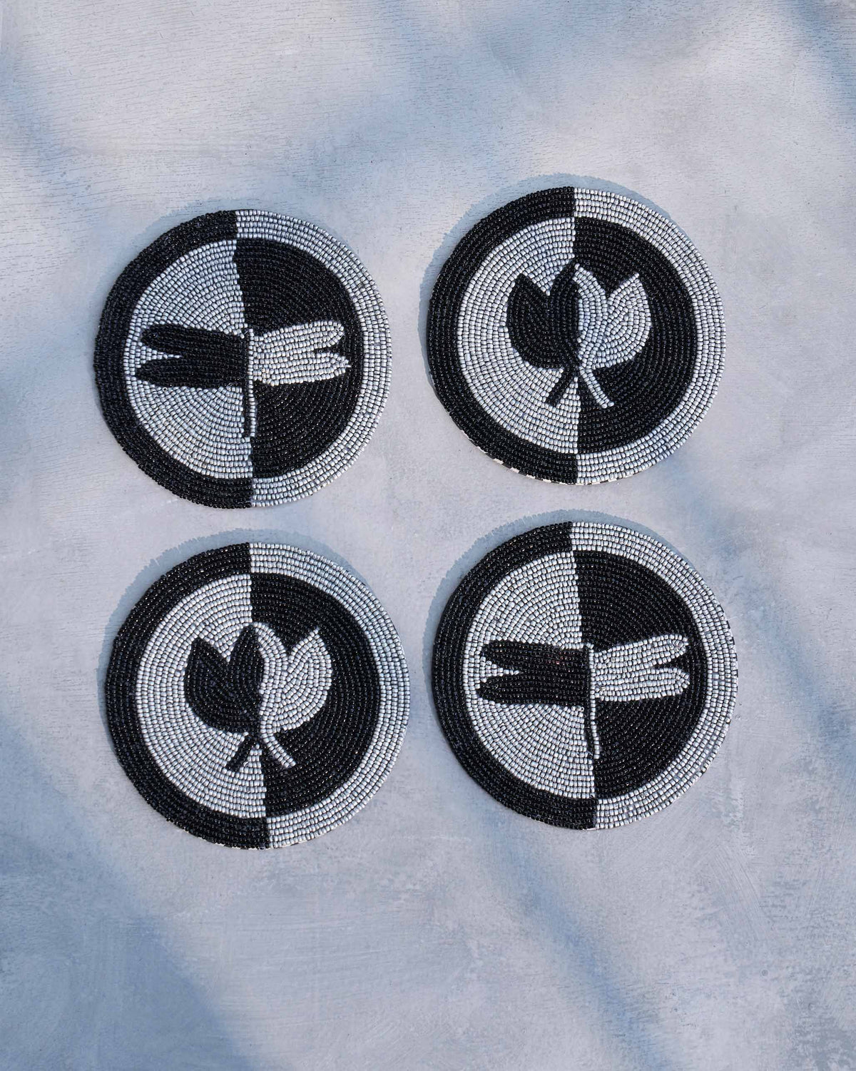 - This set of four Dragonfly Coasters showcases the rich tradition of Zanzibar's beadwork in a stylised pattern of dragonflies and lotus, inspired by the region’s flora and fauna.