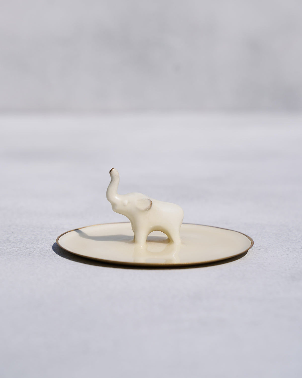 - An eye-catching addition to your tabletop, this haathi trinket tray is crafted in brass and finished glossy white