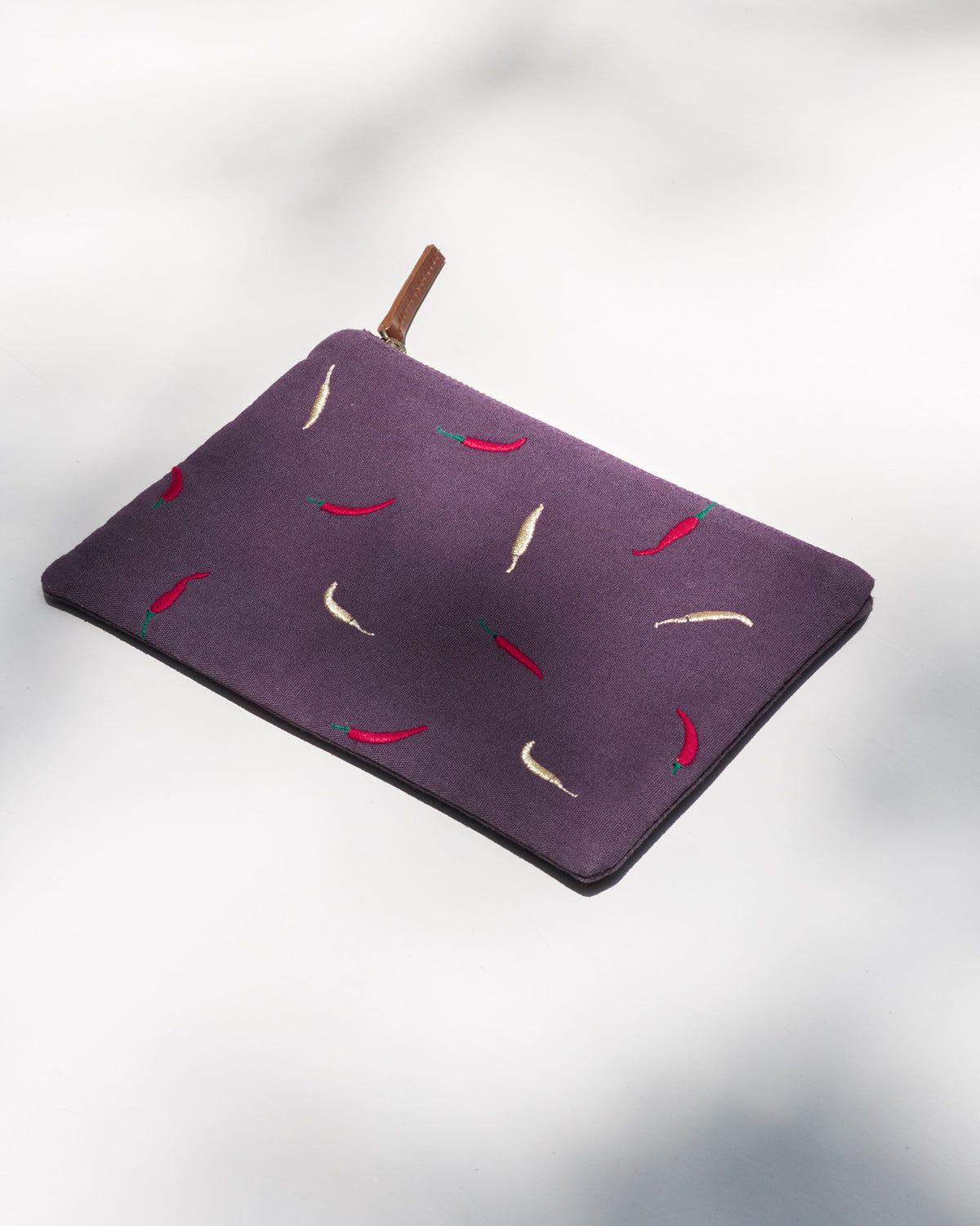 - Perfect to collate all those bits and bobs that have a knack of going missing, this canvas pouch is embroidered with pink and gold chillis and features a zip top enclosure