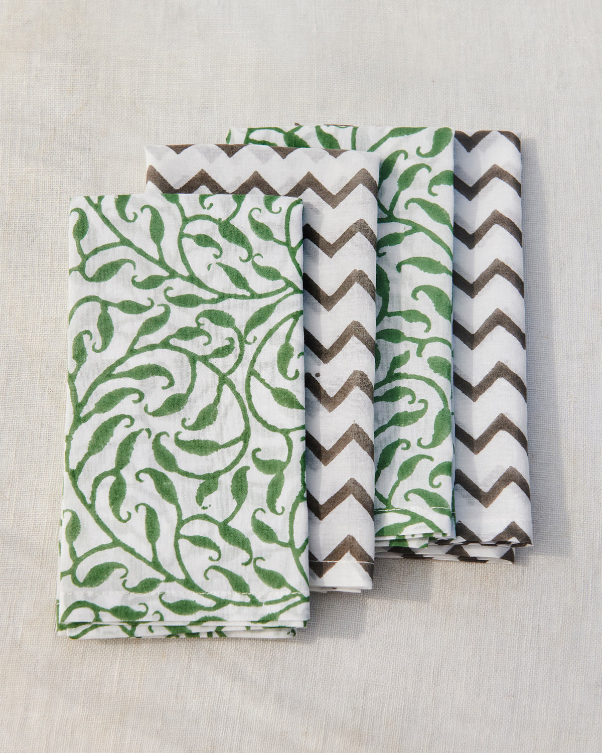 - Set of four napkins to layer with your decor and dinnerware in a cool understated palette
