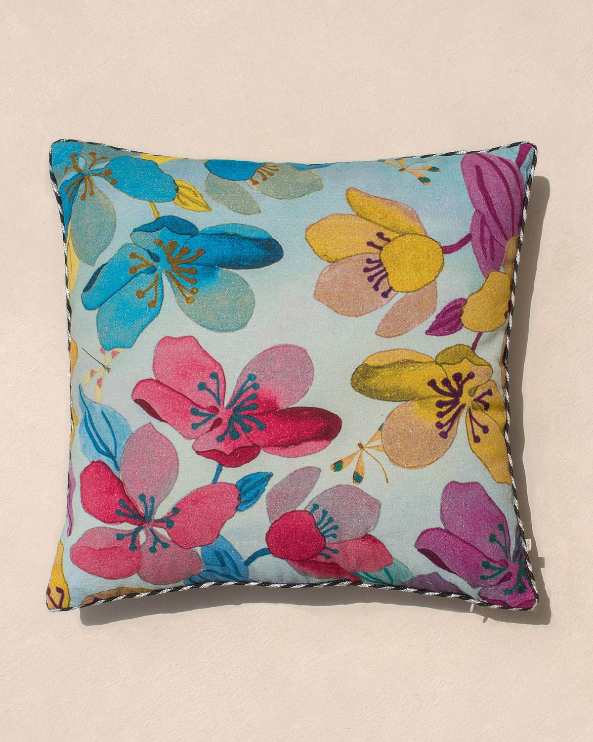 - Fresh and summery florals run across this reversible cushion that draws from the wandering spirit of nomadic gypsies