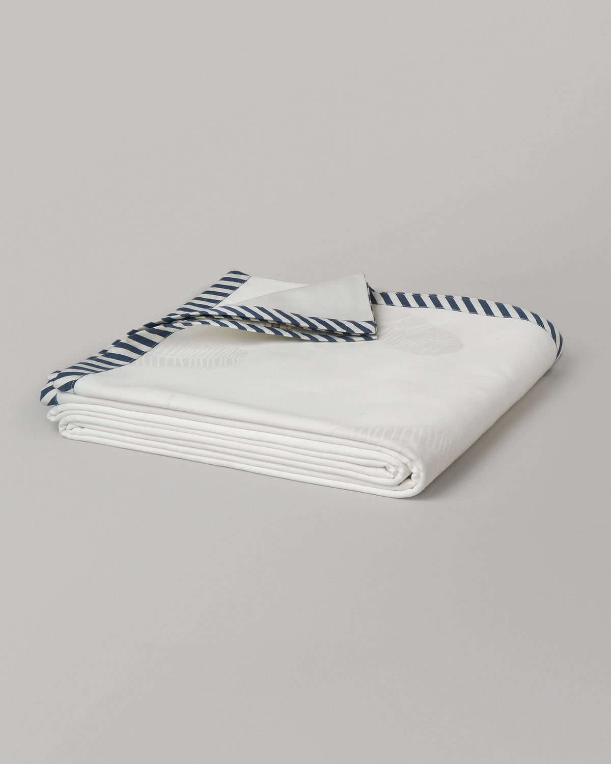 - Lined with our classic stripes in a bold navy around the edges, the cover comes dotted with Frangipani leaves gently embossed on the fabric.