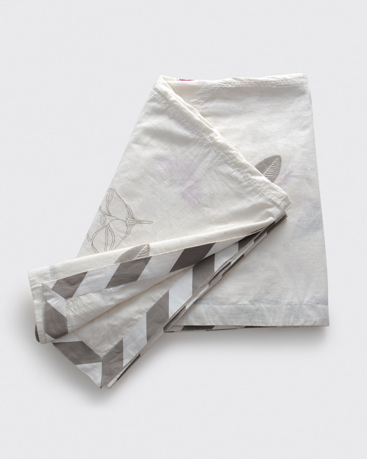 - This Frangi table cover has delicate floral details at the borders, with a modern, understated trim