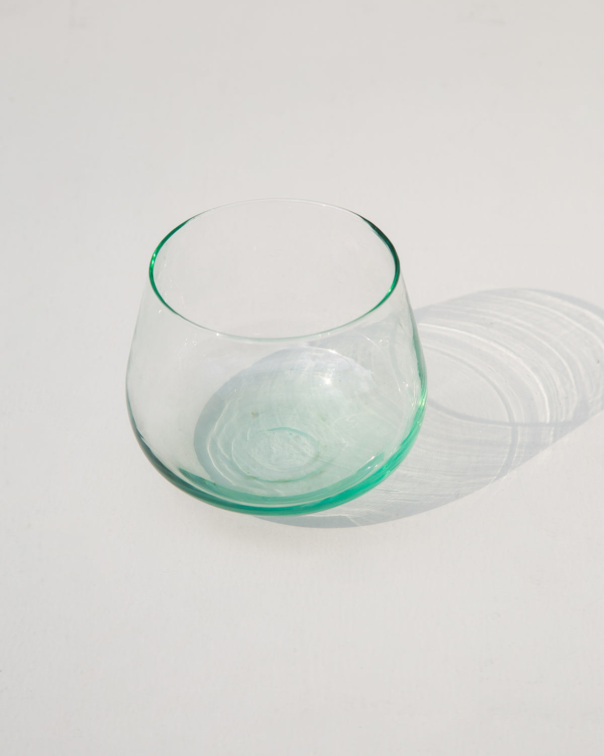 - This goblet comes without a stem, is wide-bottomed with a pleasing weight and is tinted in a natural green hue