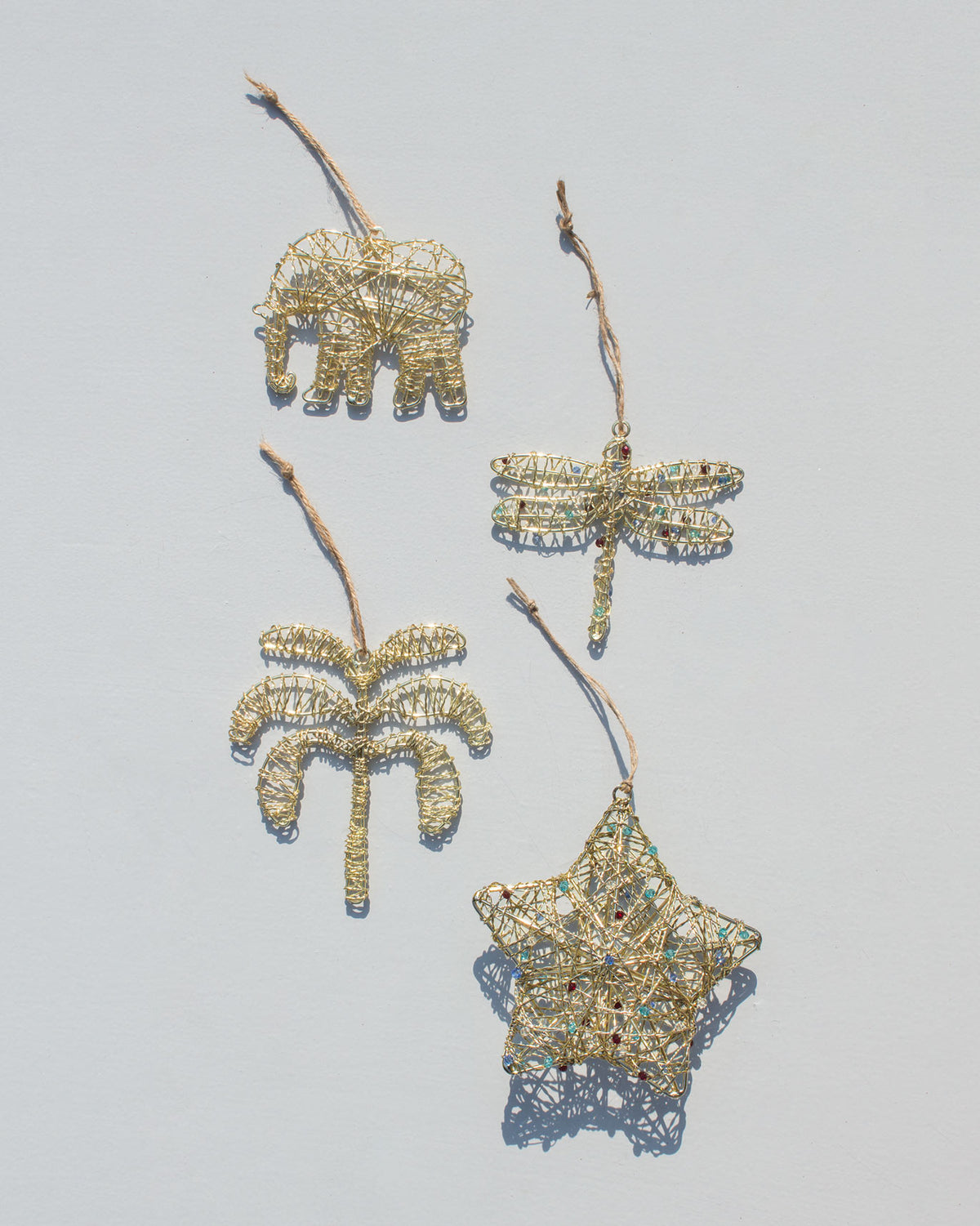 - A special set of four ornaments for a very Nico fetsive patch, these gold wire tree trinkets are meant for a sparkly Christmas, or to use as curios after.