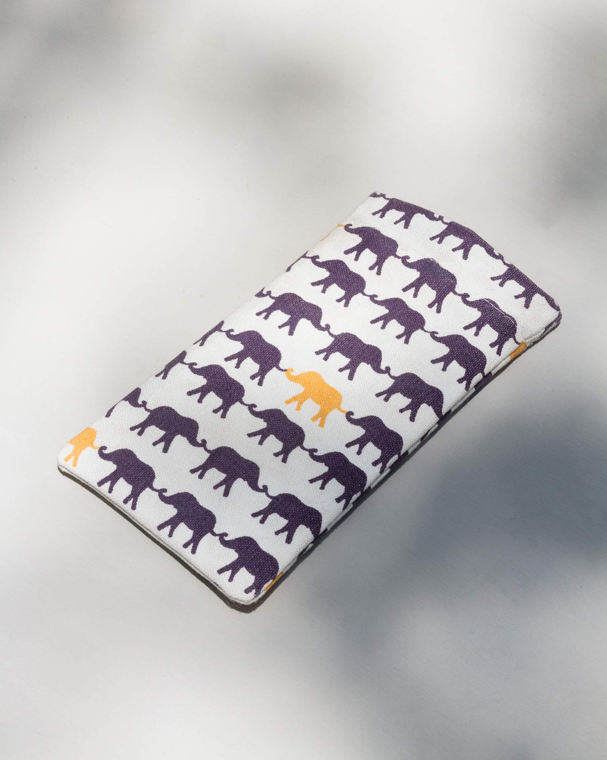 - This spectacle case in bright vegan leather snaps shut with a magnet at the top and features a little embroidered elephant.