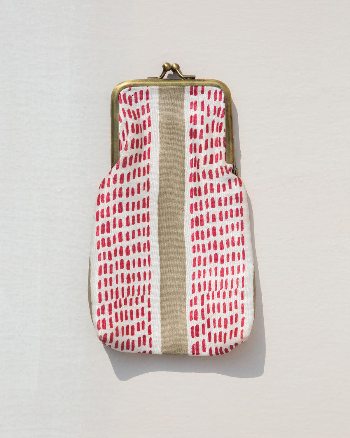 - This spectacle case in luxe mashru is printed with ruby and sand motifs on ivory, and features an antique silver snap closure