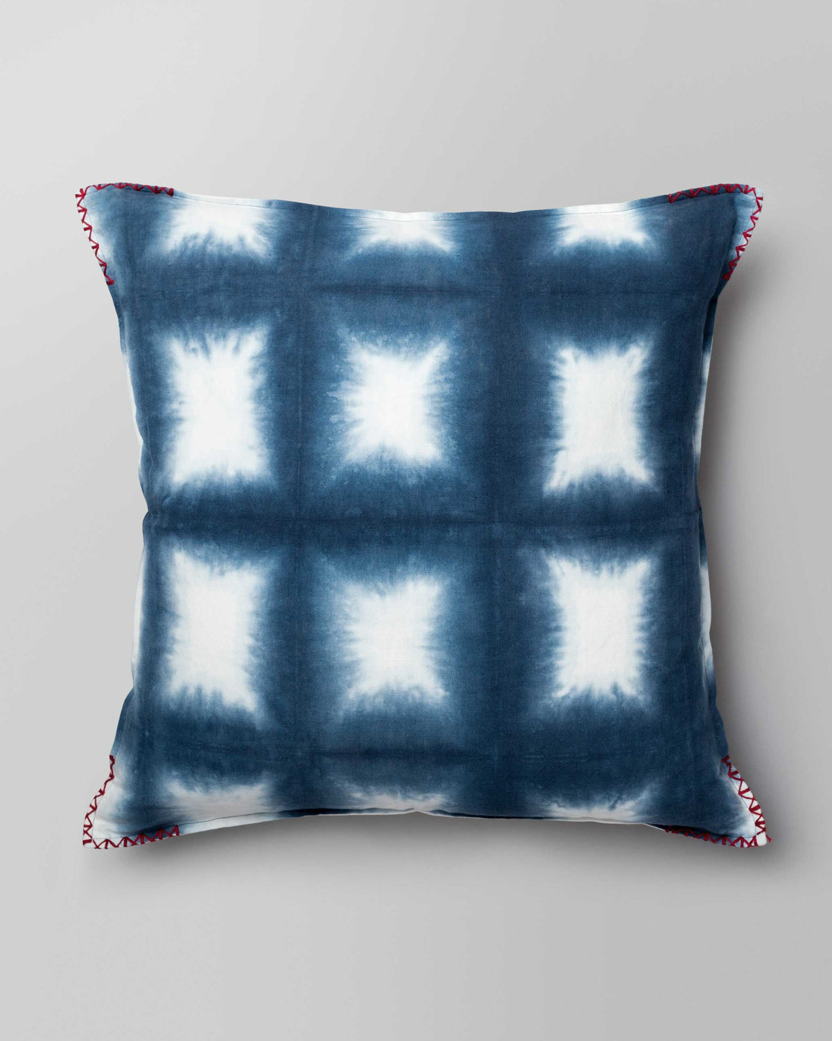 • We love tie-and-dye, and our Shibori inspired cushion cover features a hint of bright red stitching along the corners
