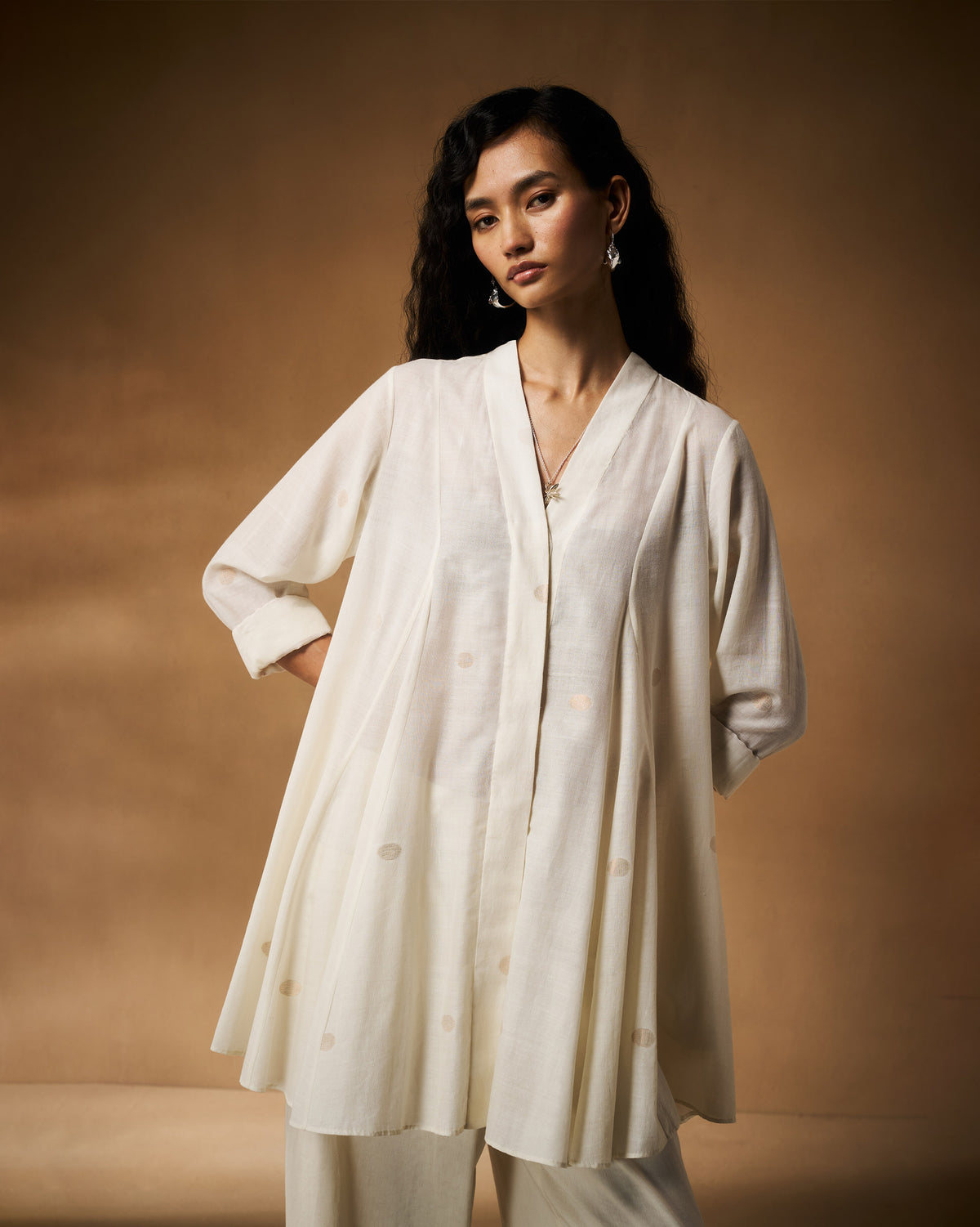 - A dreamy collection infused with heritage and opulence, the free-flowing Inayat Shirt features zari jamdani dots against an ivory base.