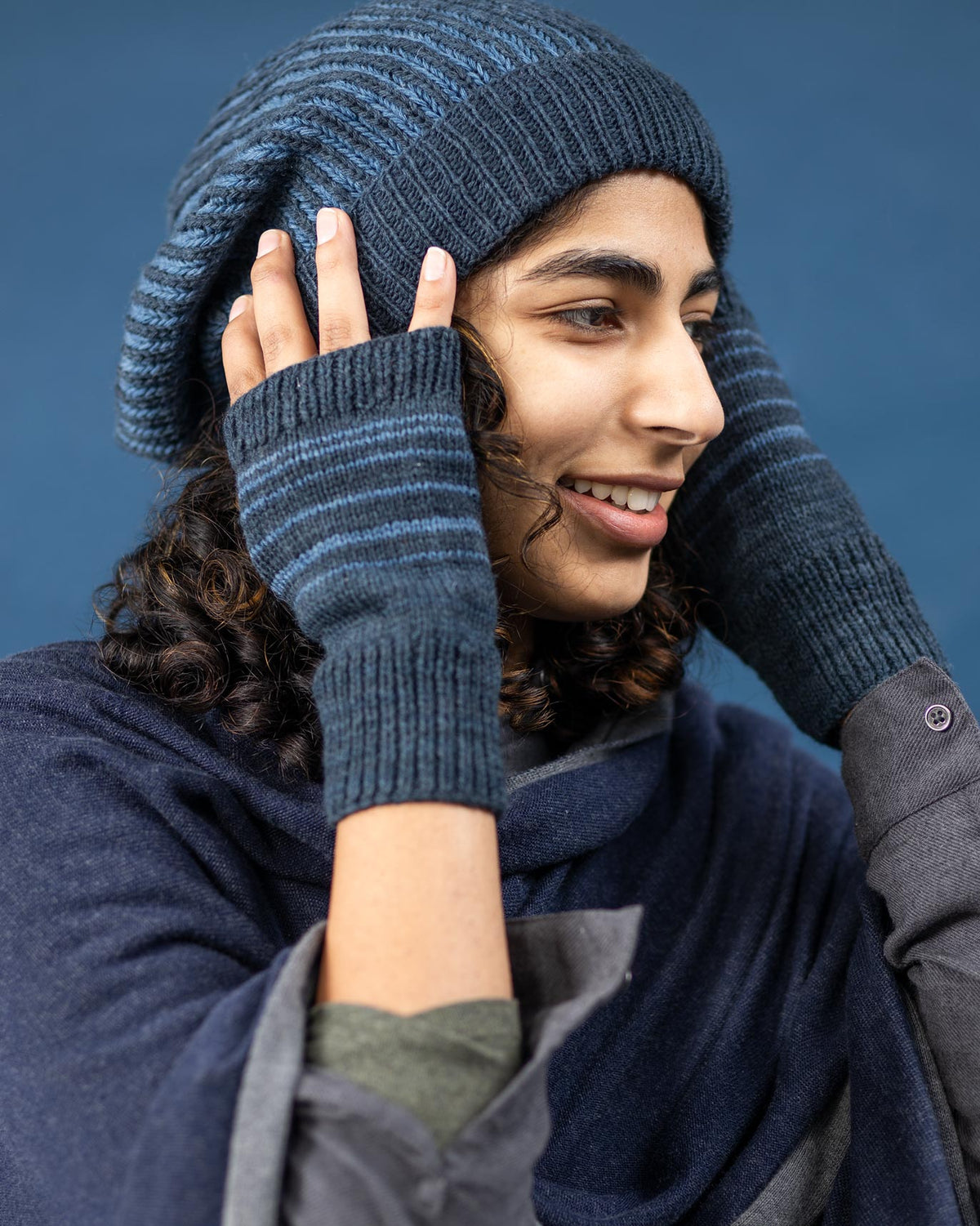 - Note: Our ethically-sourced merino wool is dyed in natural indigo and hand-knitted by female artisans in Uttarakhand.