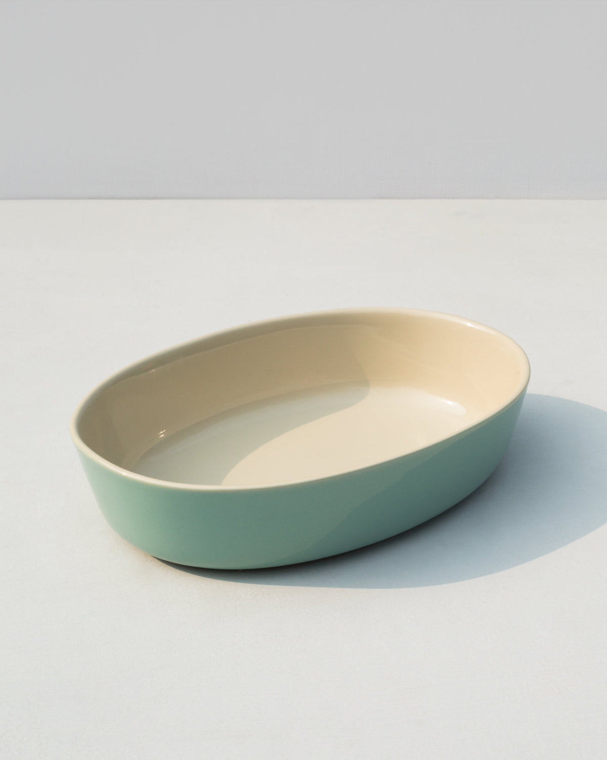 - Here's proof: our aqua and beige Java Baking Dish can be taken from kitchen to table to match your overall theme and setting