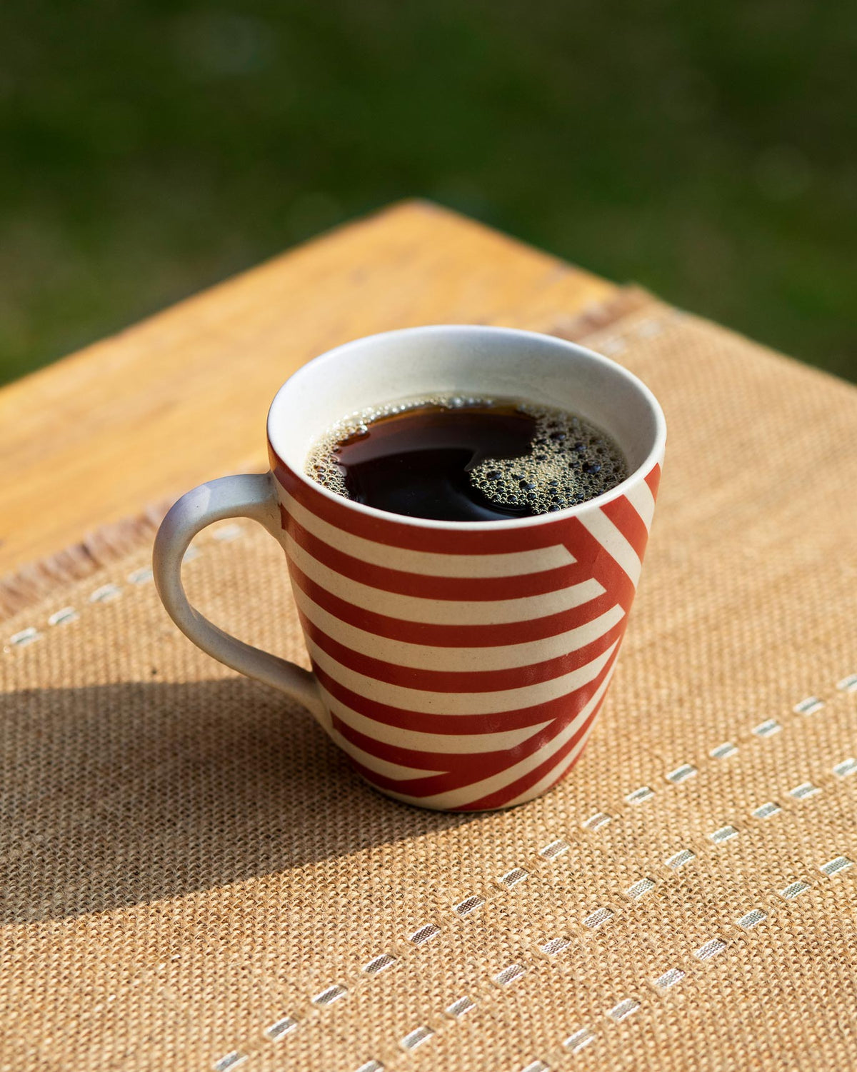 - With graphic prints that are inspired by Teesta's path through Bengal, this stoneware mug will prop up high tea with just the right infusion of colour and fun
