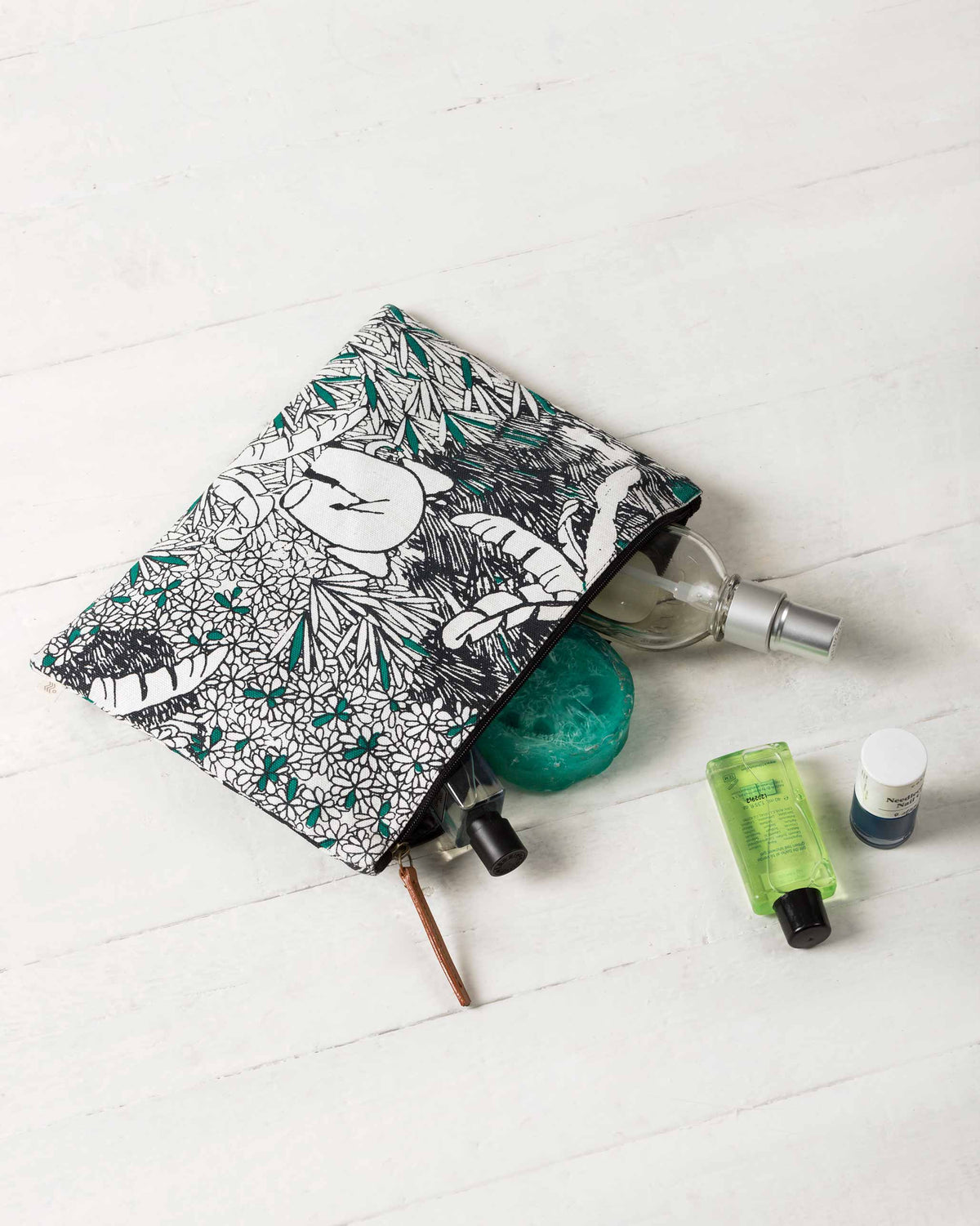 - Perfect to hold all those bits and bobs that have a knack of going astray, this black and white printed pouch features a zip top enclosure, and a handy waterproof lining