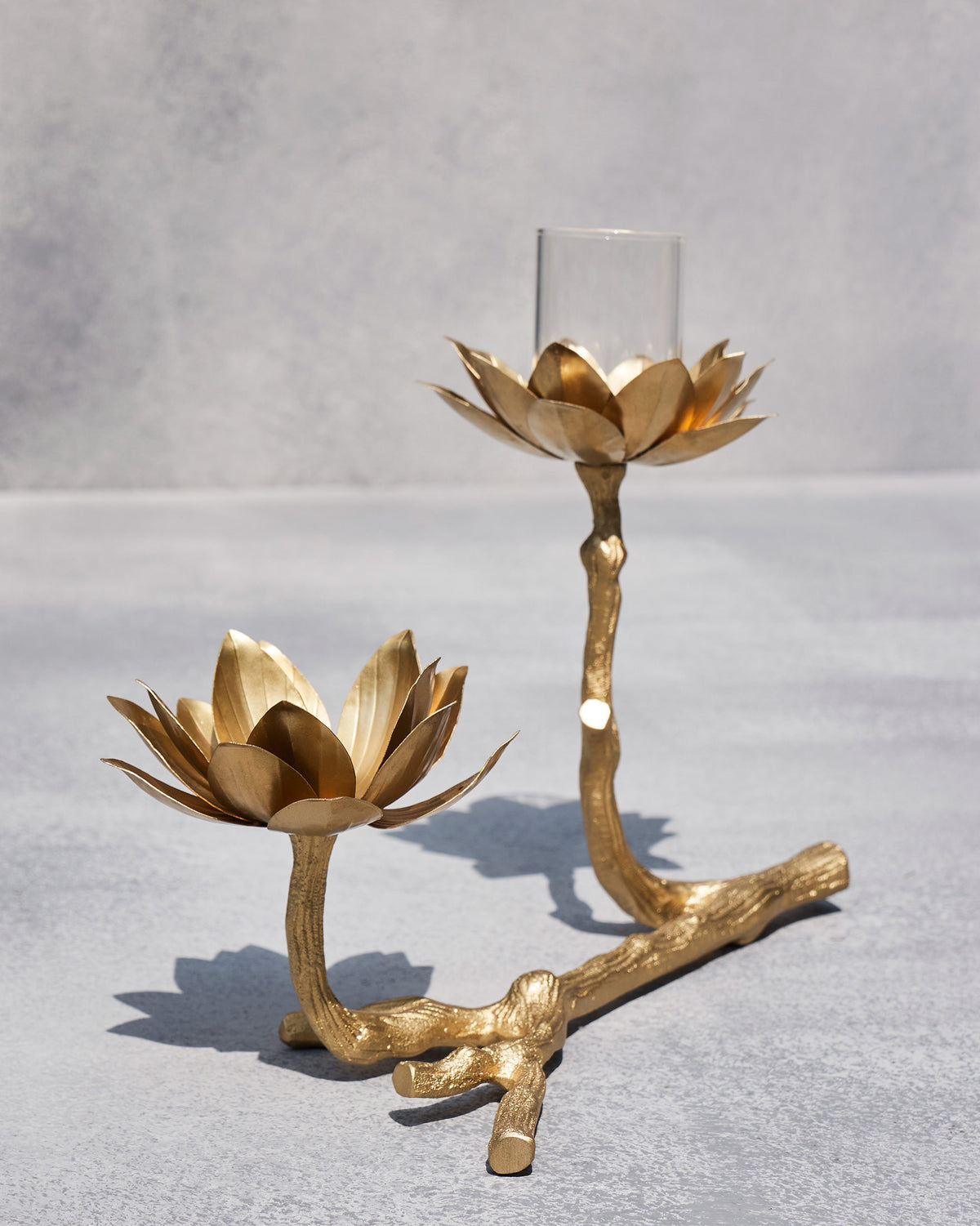 • Crafted in sturdy brass and iron, this tea light holder features a beautiful lotus design, inspired by the terrains of the snow-laden Himalayan highlands