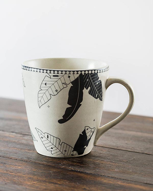 - In classic stoneware, this oatmeal hued piece comes decked with hand-painted banana leaves and a traveller's tent