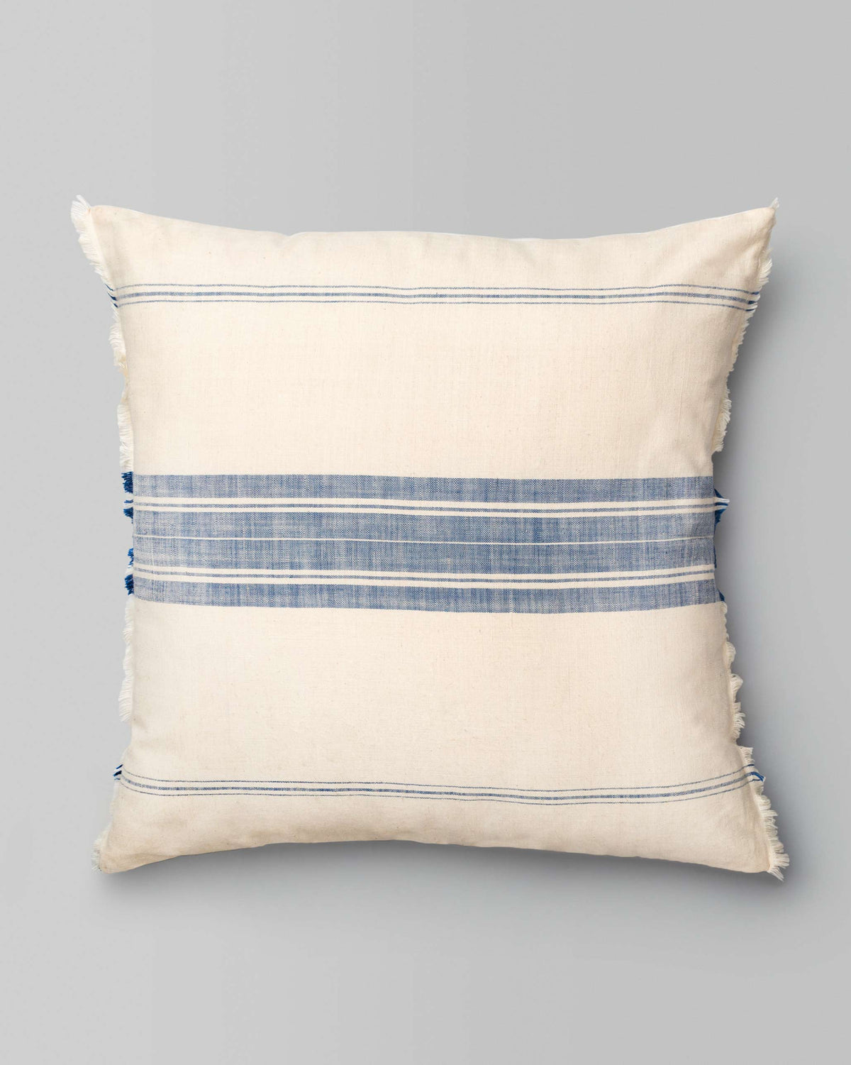 - We're big on handfeel and our Kemuri French Stripe cushion is super soft, woven in ivory with blue stripes running down the length