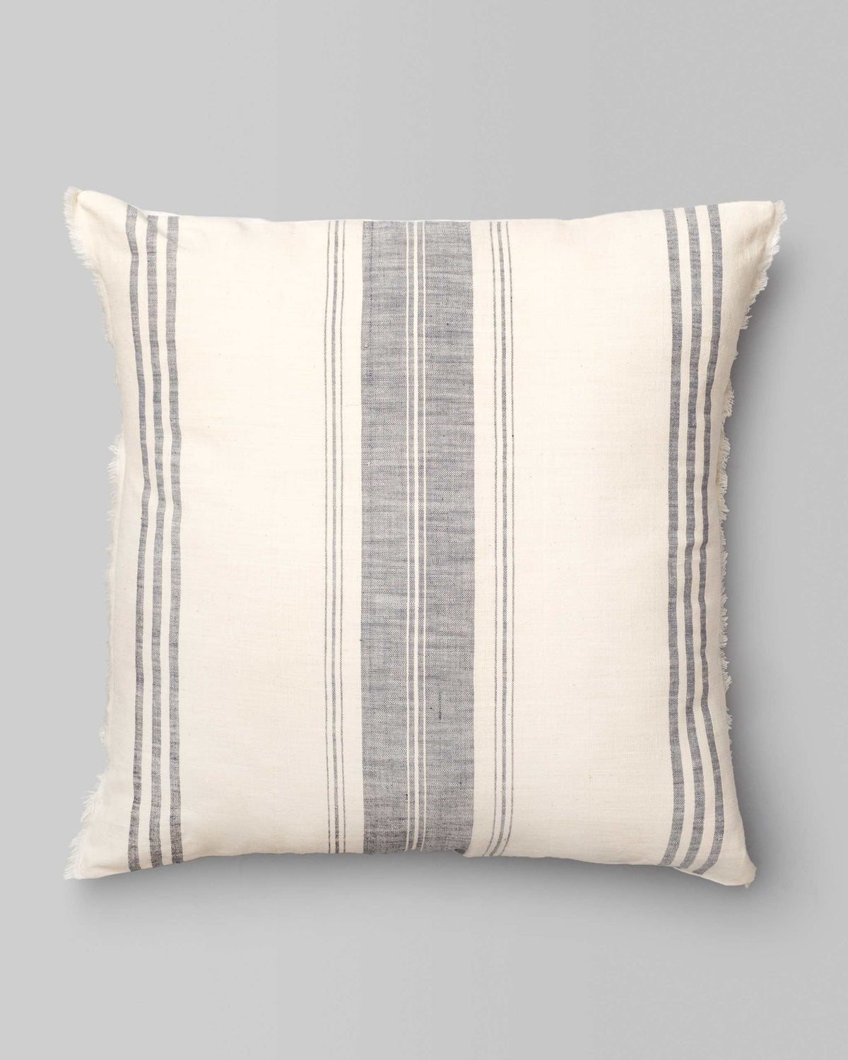 • We're big on handfeel and our Kemuri French Stripe cushion is super soft, woven in ivory with dove grey stripes running down the length