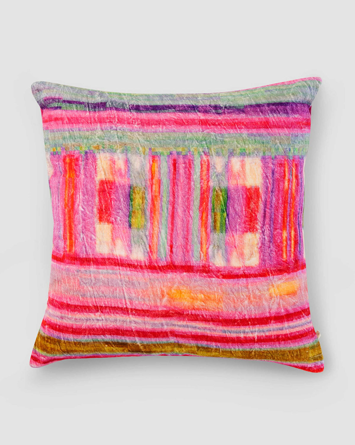 • Our Kente stripe cushions feature a multicoloured print on cotton velvet, and self fabric ties on the berry casement back