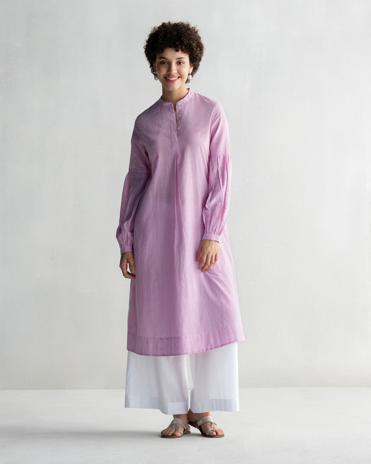 - Make a statement this summer with this soft lilac kurta featuring a relaxed fit.