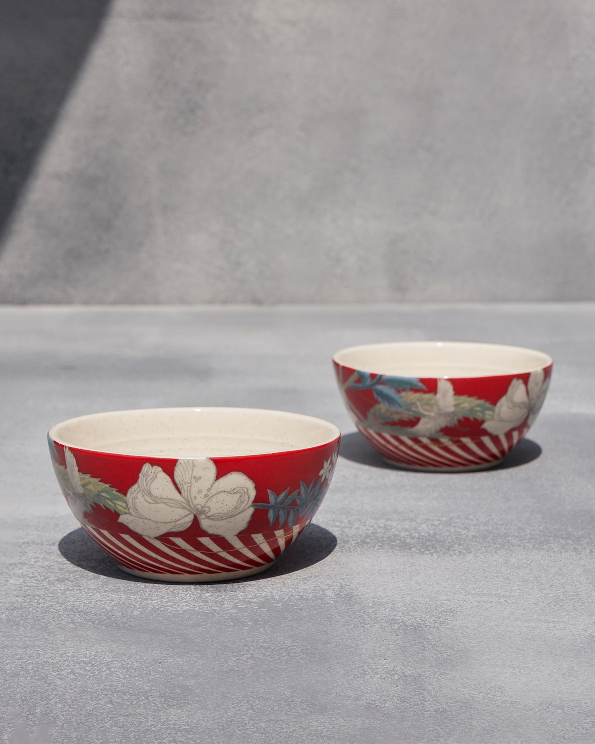 - This set of quirky red stoneware cereal bowls with white floral makes for a perfect expression of love