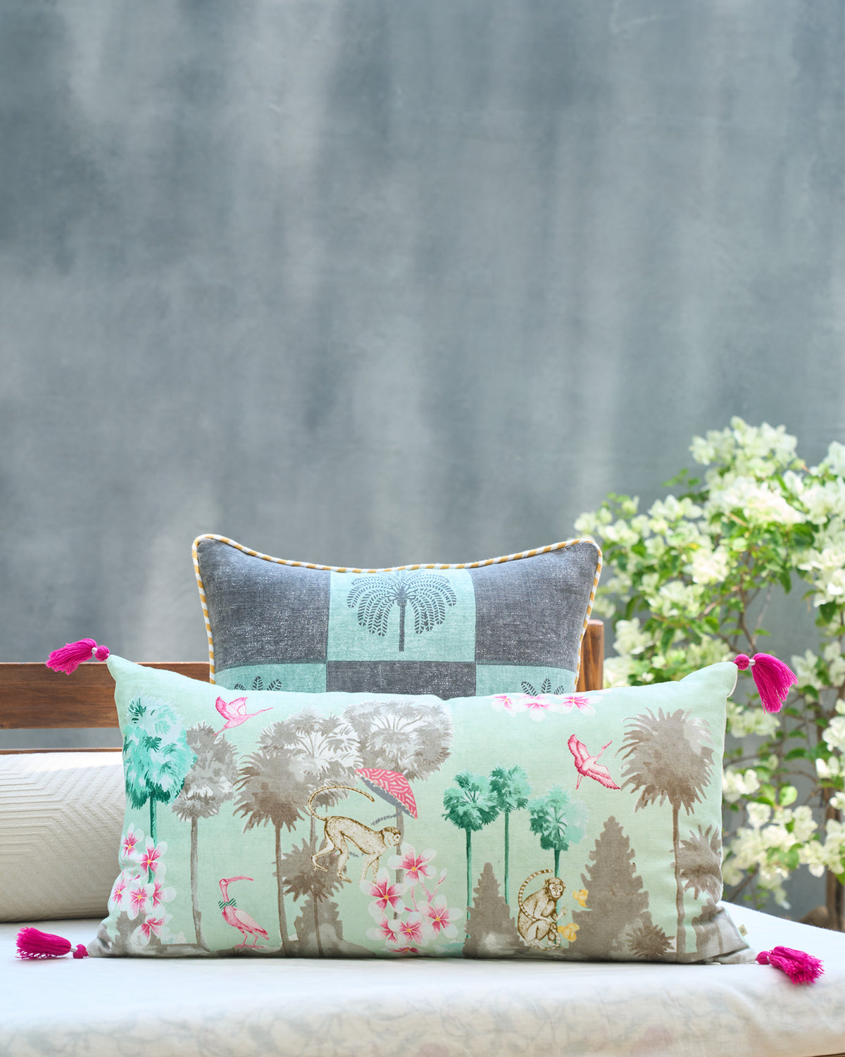 • The captivating print on these cushions combines various Cambodian elements, forming an enchanting scenery that will transport you to a world of beauty and tranquillity.
