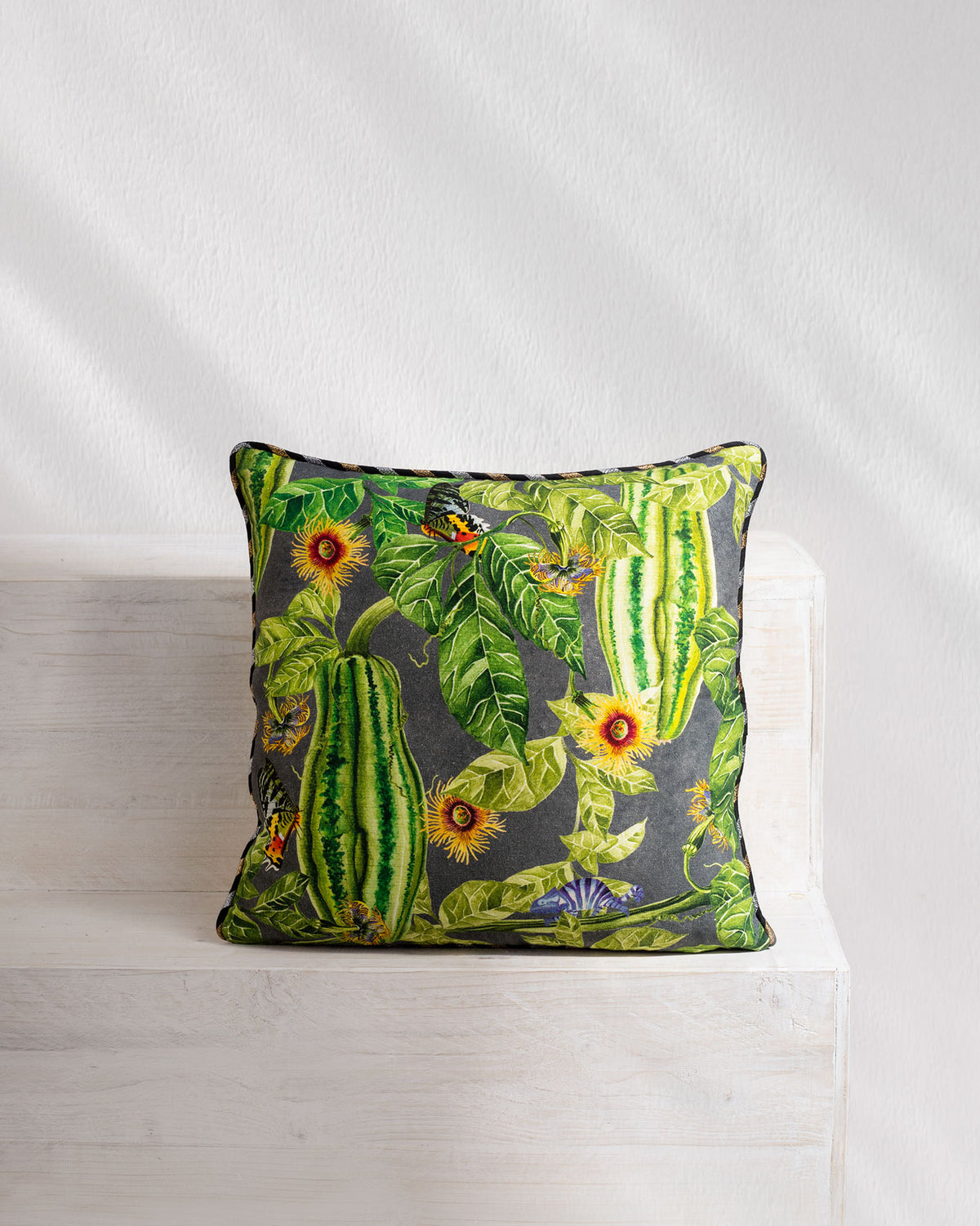 - A very tropical reversible cushion featuring the liana vine digi printed on one side of the cushion