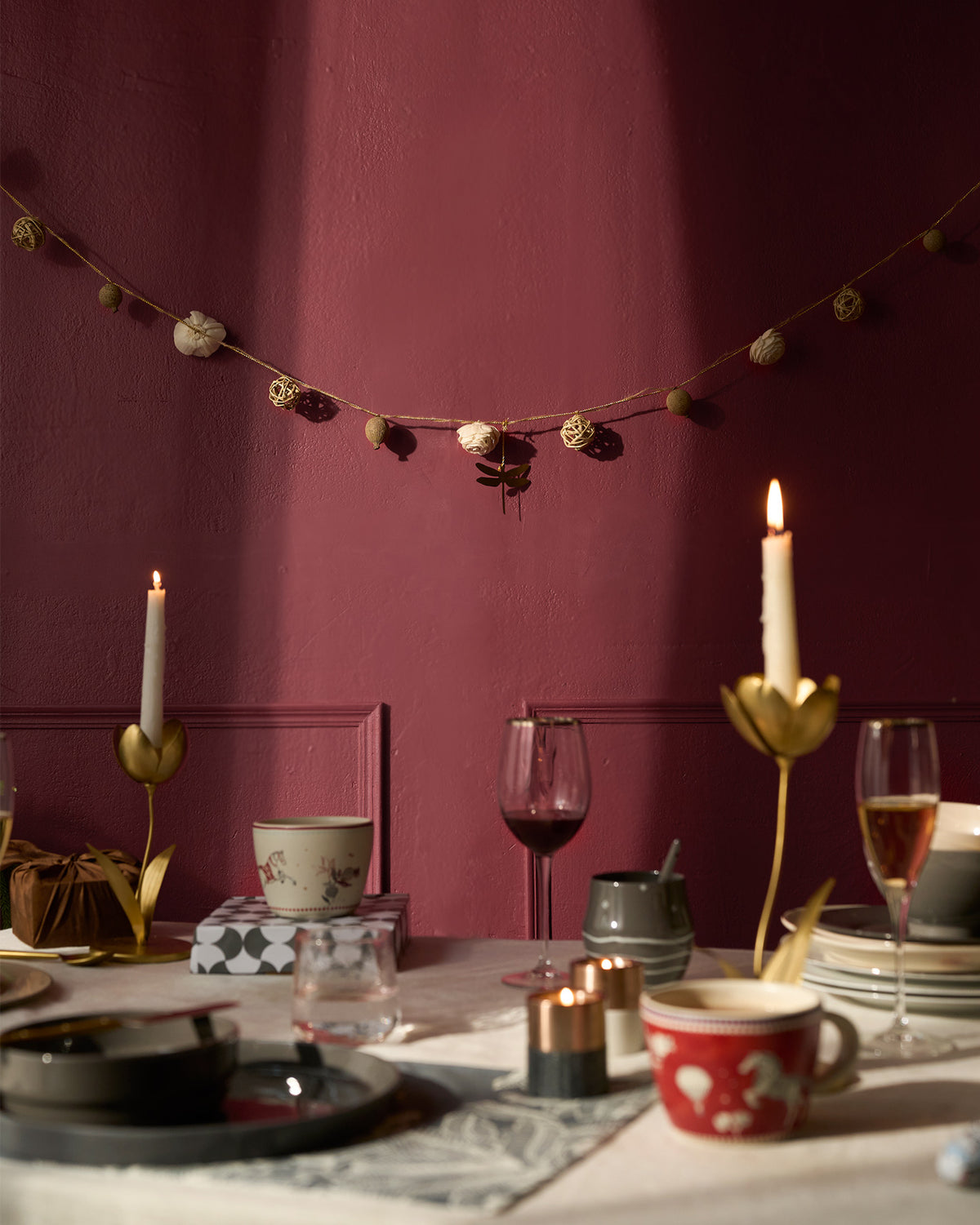 • A gently gleaming toran strung with little gold-finished stars, pomegranates, and all-dried sholapith flowers