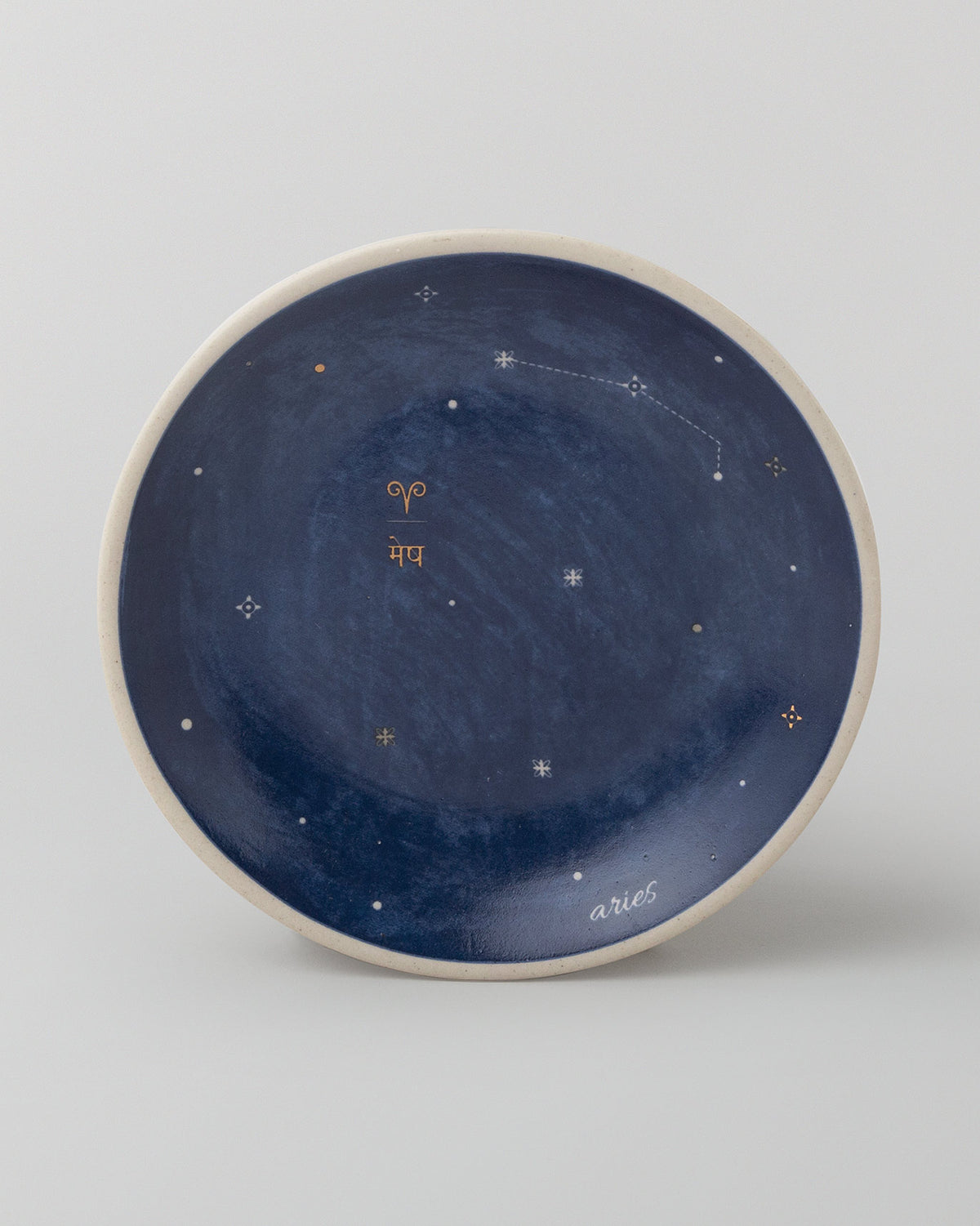 - In a beautiful midnight blue hand-painted on stoneware, there's a piece for every sign in the zodiac.