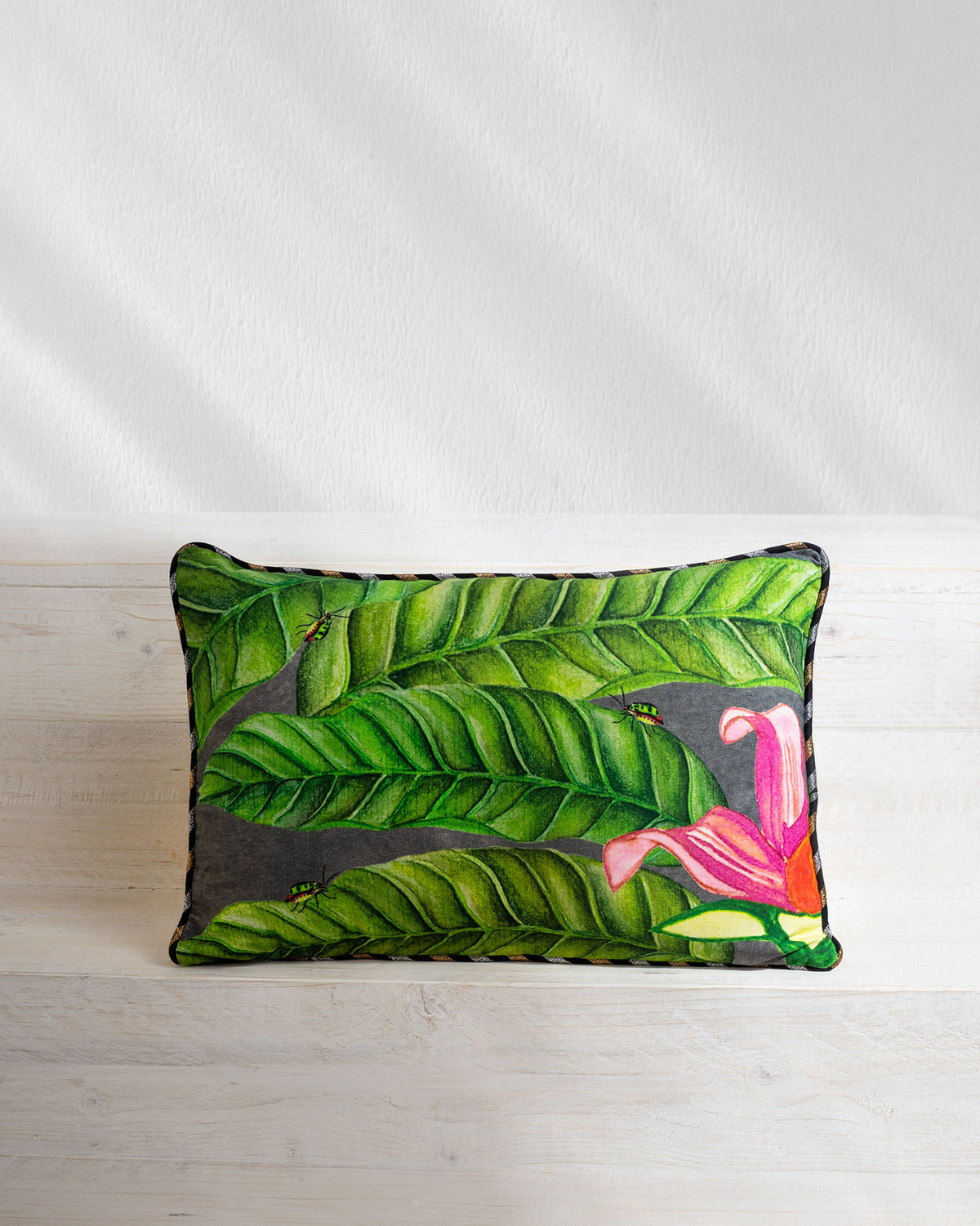 Madagascar Foliage Lumbar Cushion Cover - Charcoal