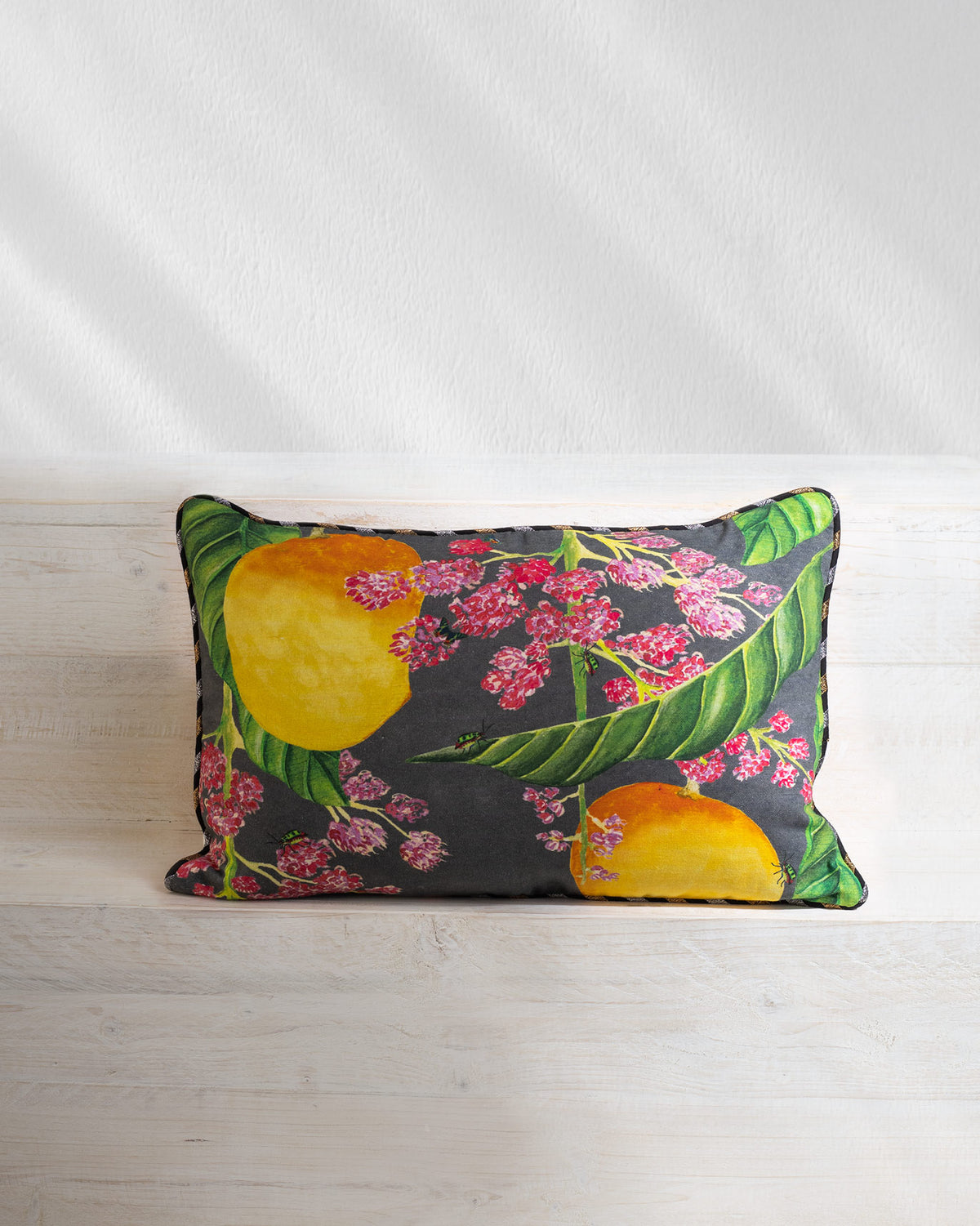 Madagascar Mango Lumbar Cushion Cover - Charcoal