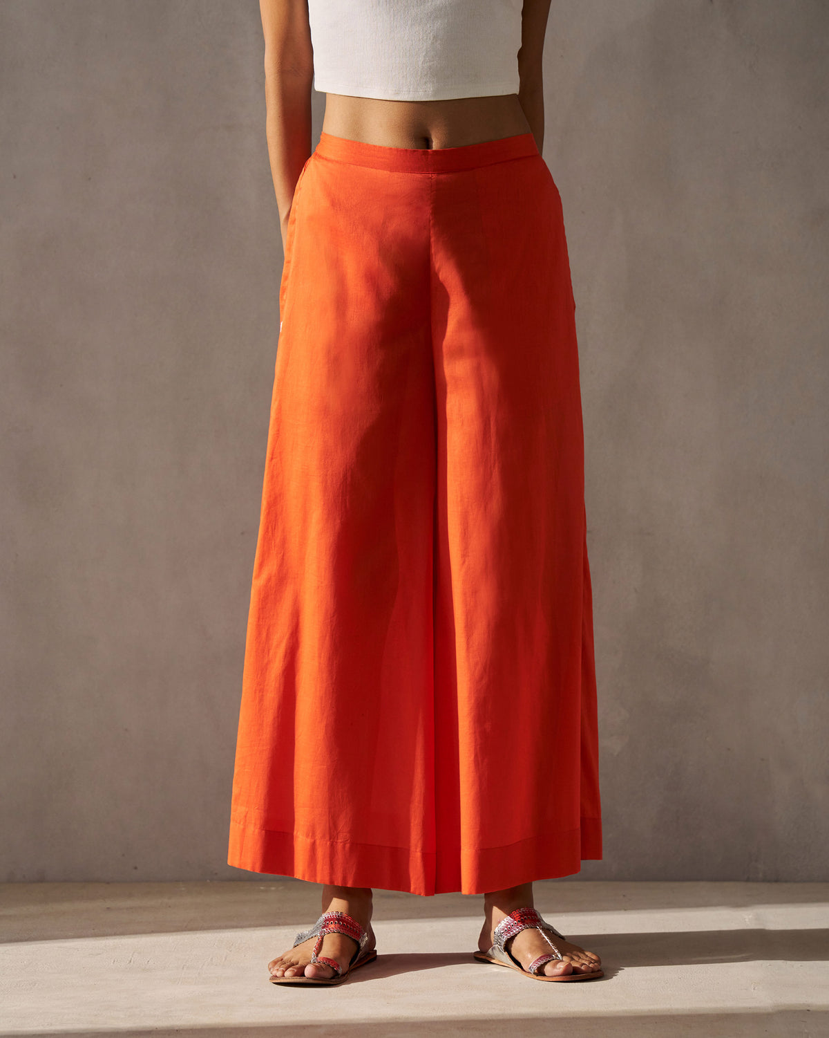 - Our Marrakech Flared Pants offer unparalleled comfort with their breezy fit and bright orange hue, perfect for pairing with a range of outfits.
