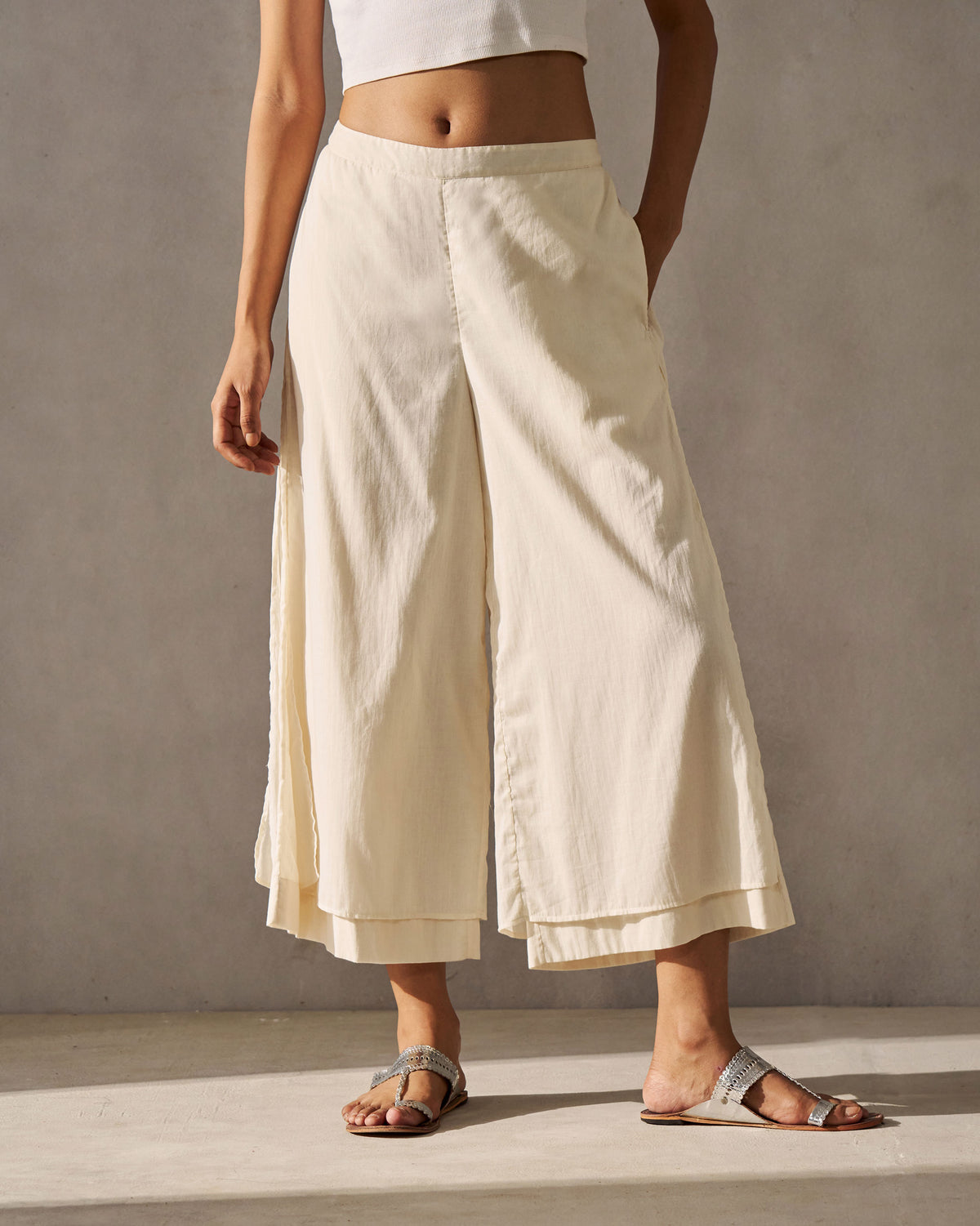 - One of our signature styles, crafted in soft, breathable cotton, these double layered pants in ivory offer a blend of style and comfort.