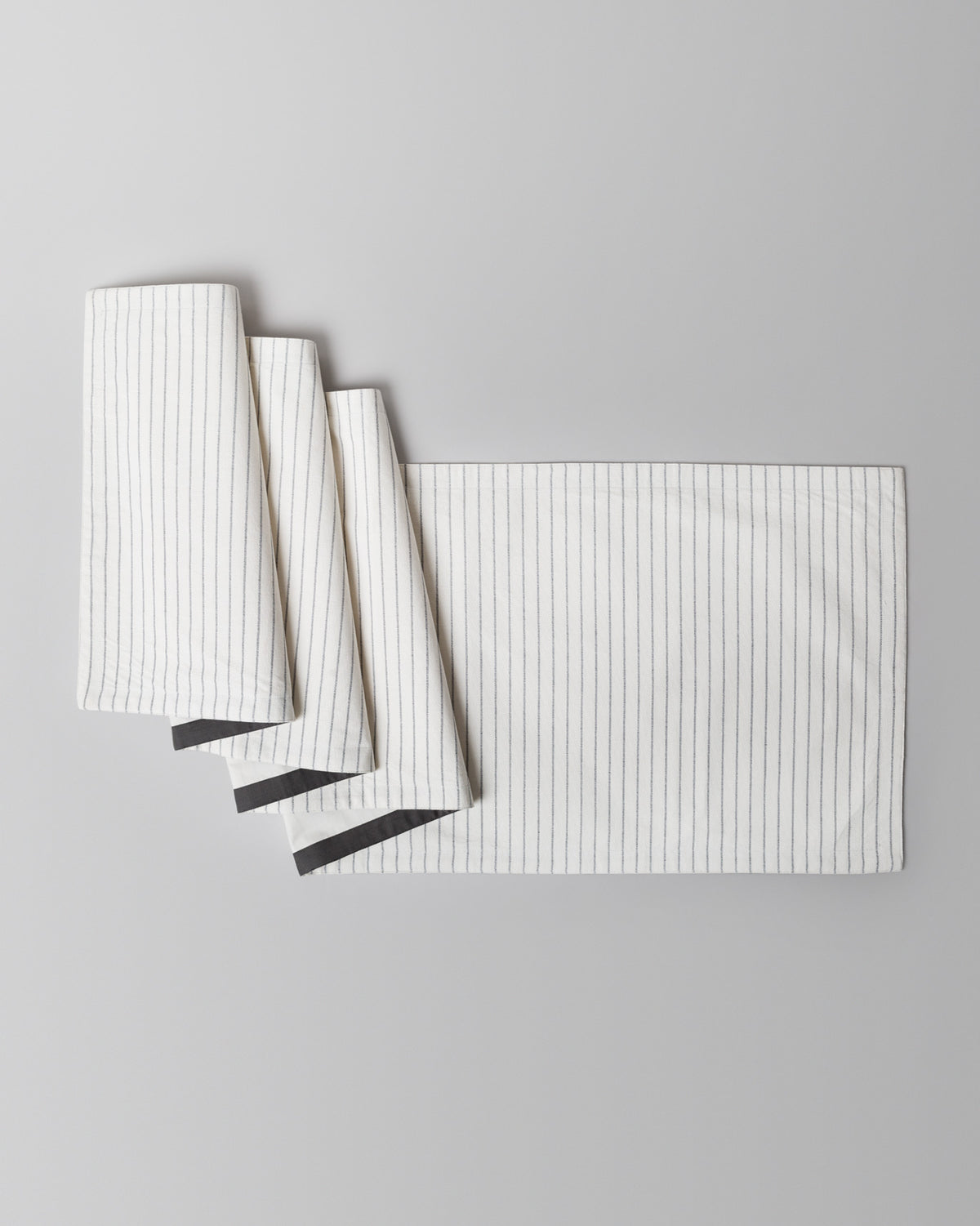 • We're big on details and our Massugu runner set in ivory and charcoal organic cotton, comes with delicious charcoal piping along the back