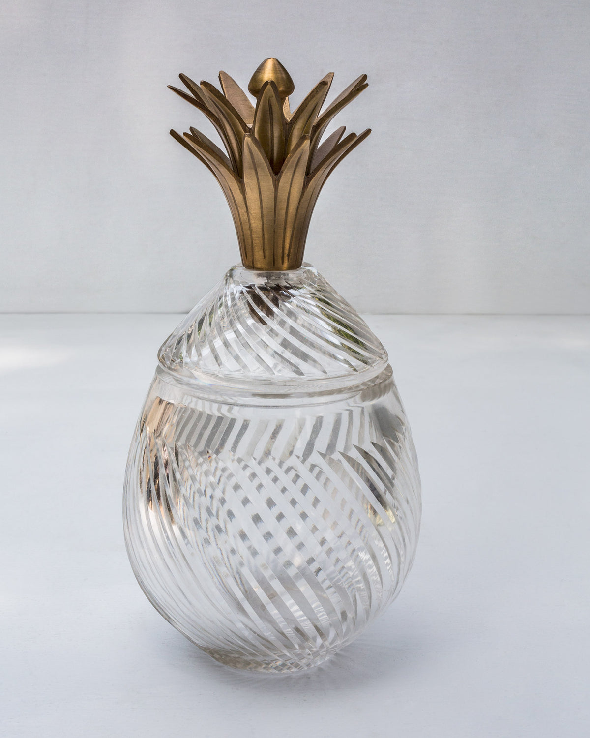 - Weighted, in cut glass with a brass lid, this piece alludes to homes with timeless character and warmth.