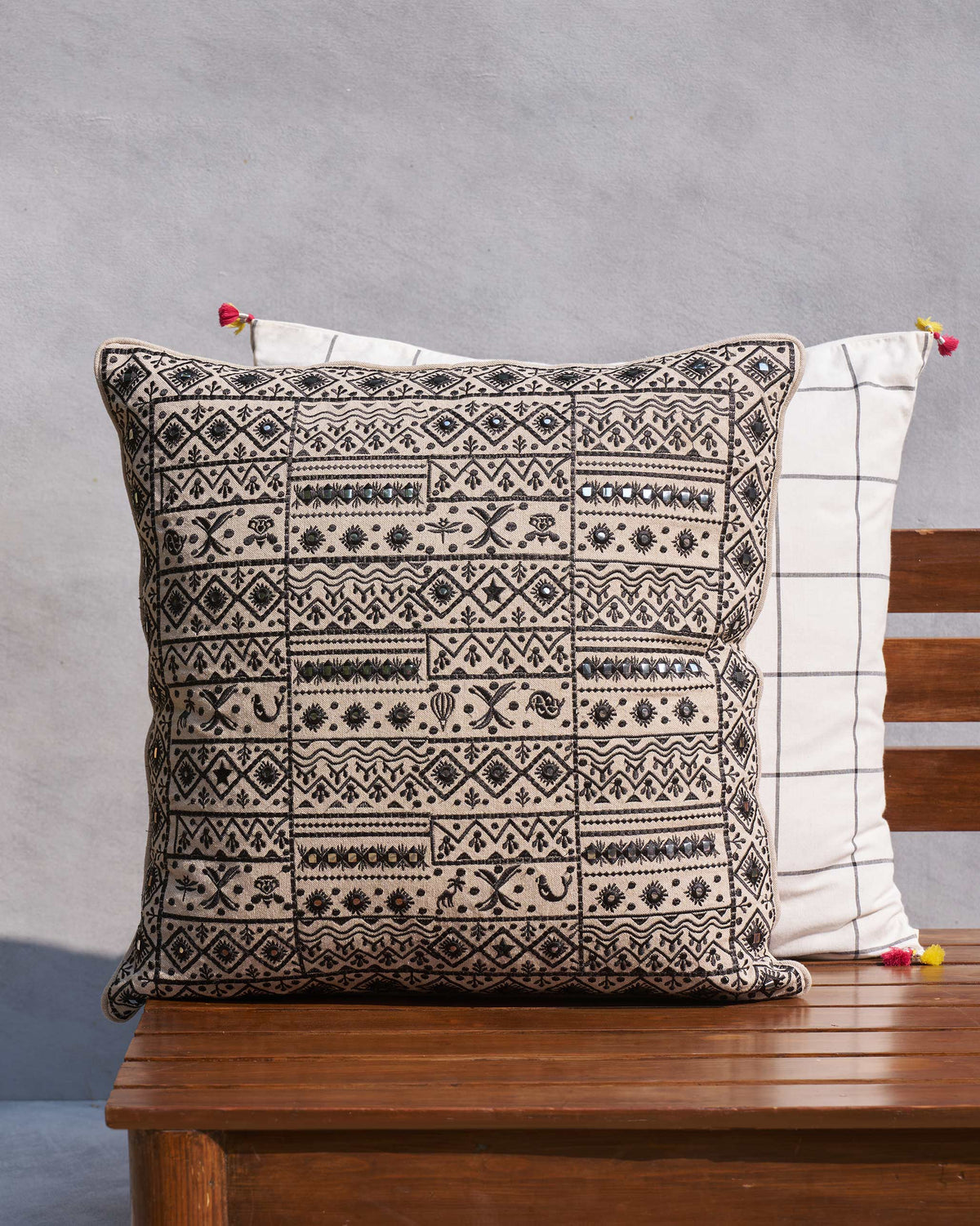 - The Morocco Mosaic Cushion Cover features a medley of patterns in a mosaic-like form embroidered in charcoal that tells tales of Morocco.