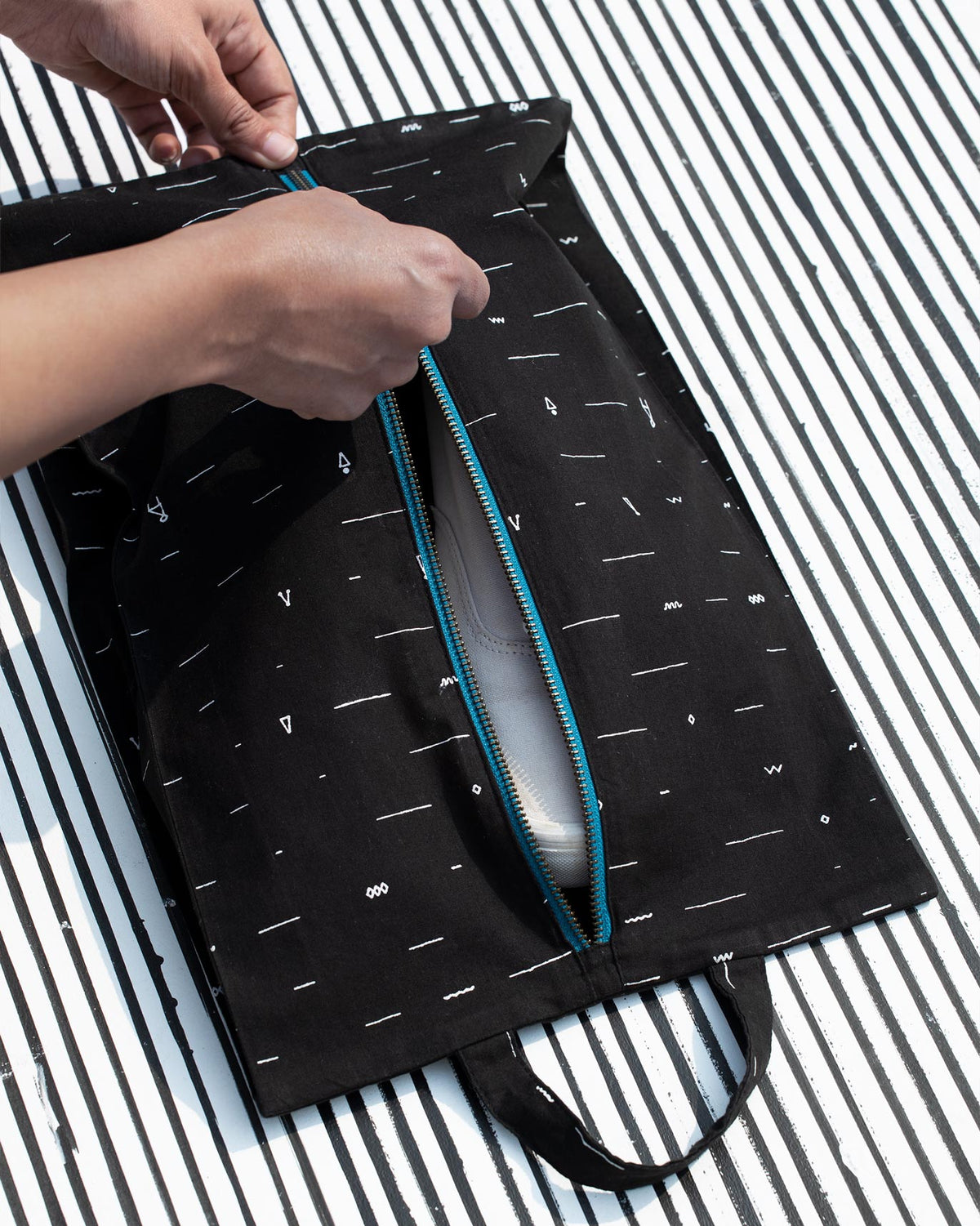 - Our lightweight shoe bag in black is perfect to compartmentalise your things