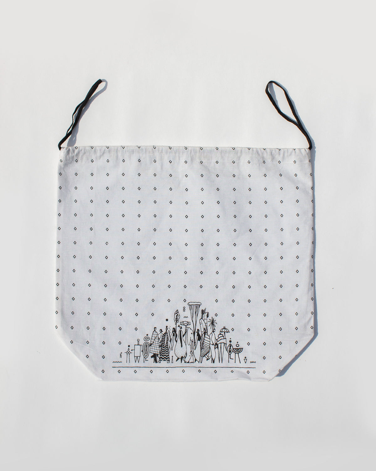 - With a twill tape closure, it's handy enough to swing along on your shoulder or stuff into a larger tote