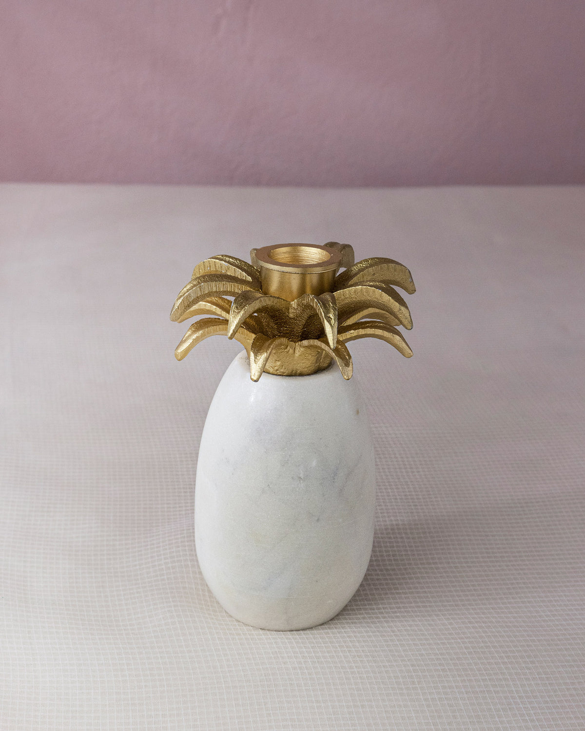 • This gorgeous pineapple-inspired, white marble-and-brass holder comes with a tapered candle