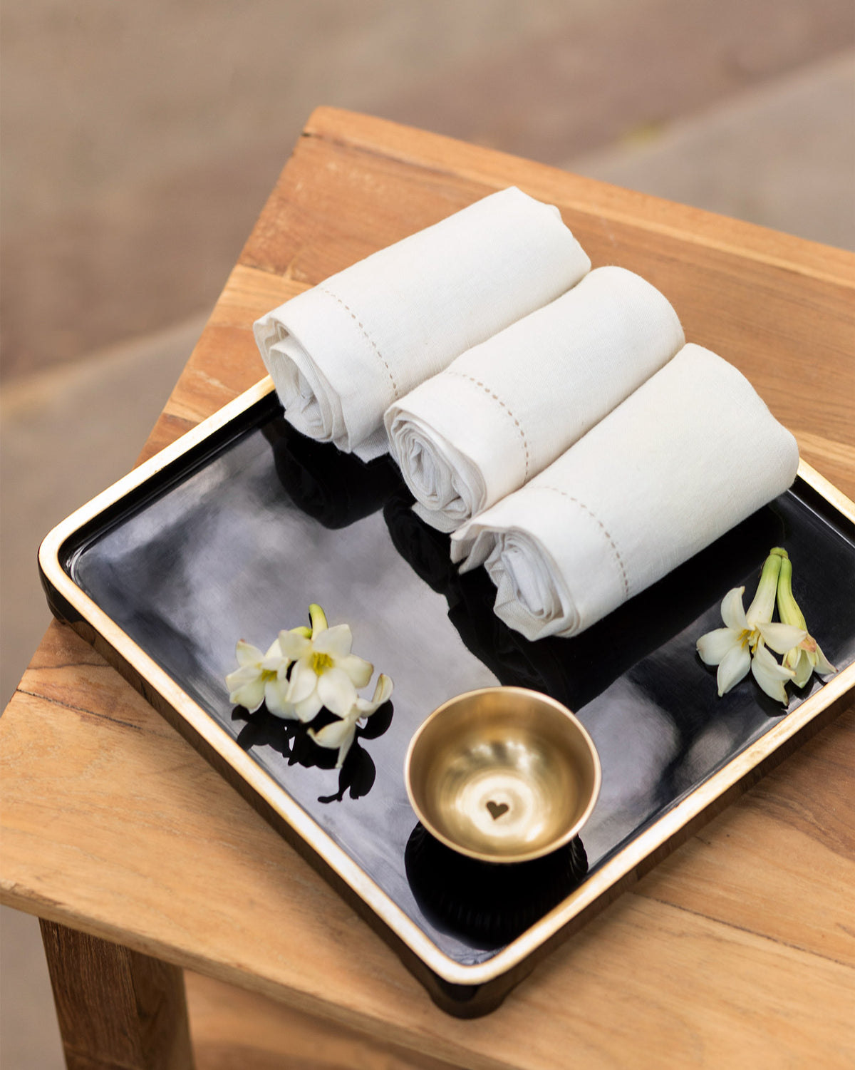 - A little home for your votives or towels, our wellness tray serves many purposes