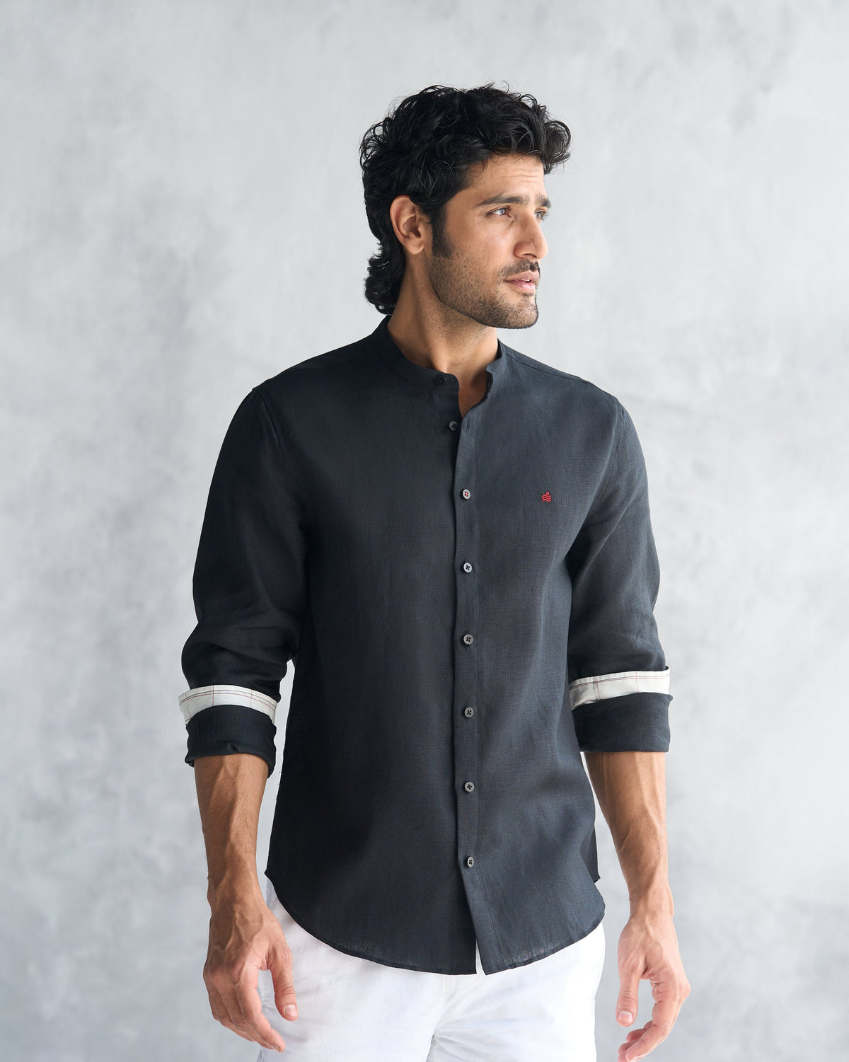 - Our token to tradition: this Nehru collar shirt is crafted in soft cotton-linen blend and comes in a slim fit.