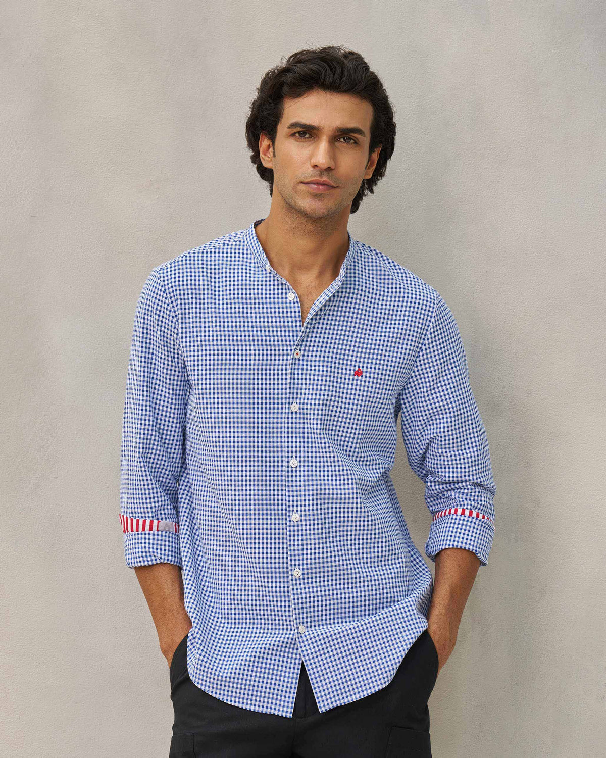 - Our token to tradition: this Nehru collar shirt is crafted in soft seersucker and comes in a slim fit.