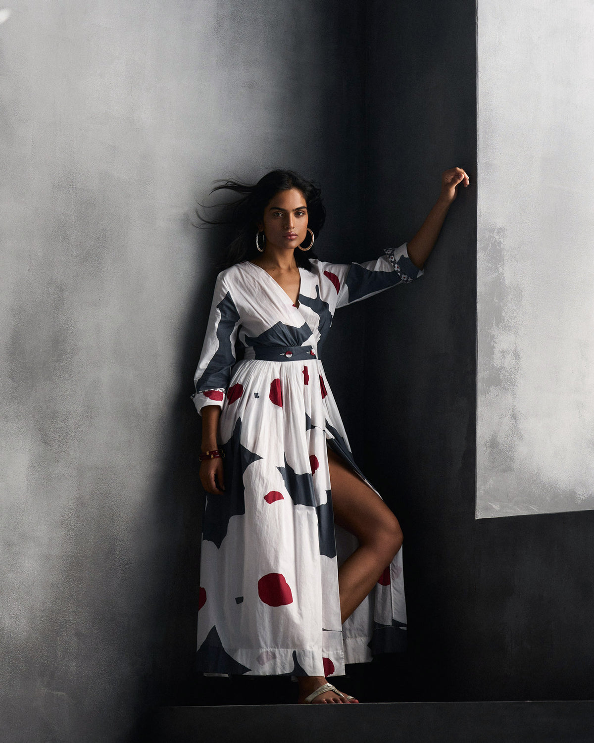 - A style that's become our signature, this is an ankle-grazing wrap dress in a bold red floral print, inspired from Myanmar