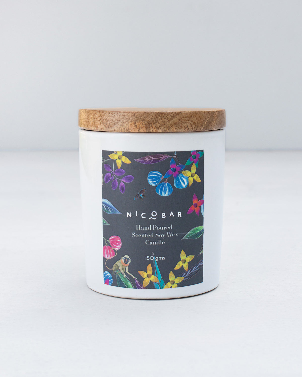 - Our warm, scented candle comes housed in a ceramic jar with a wooden lid
