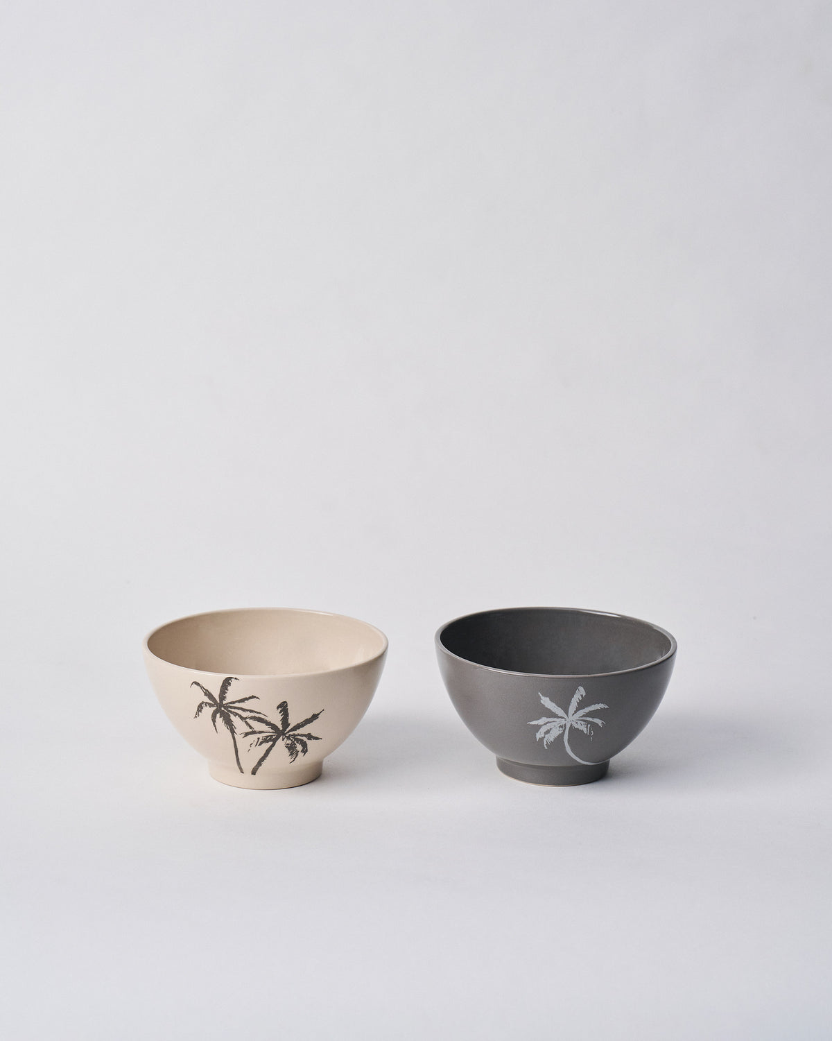 - Crafted in smooth and durable stoneware, in a classic palette featuring motif of the swaying hand-painted coastal palms from Vietnam