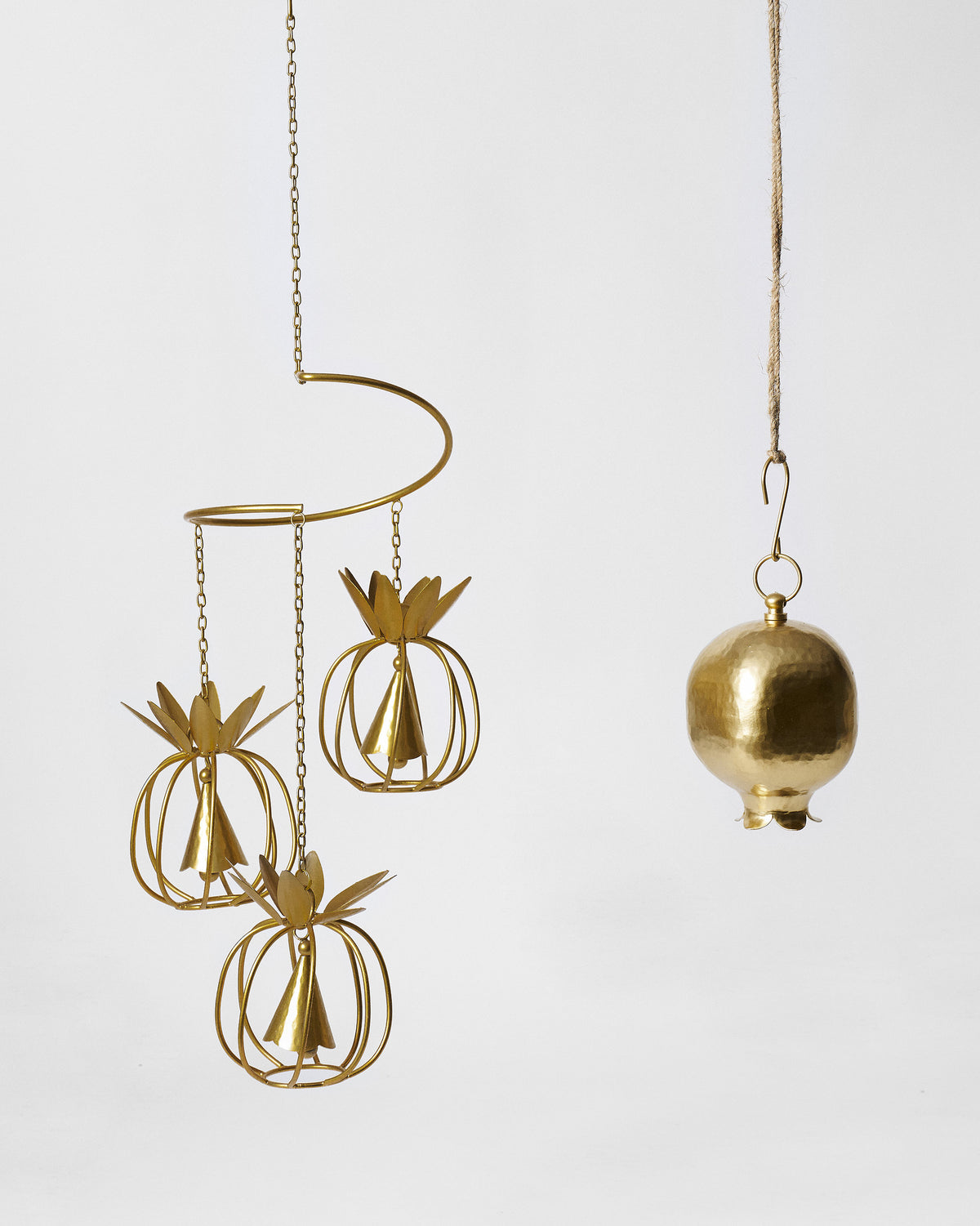 - Crafted in iron with a matte gold finish, the Anar Bell hangs at the end of a looped rope and will sit perfectly at your main doorway