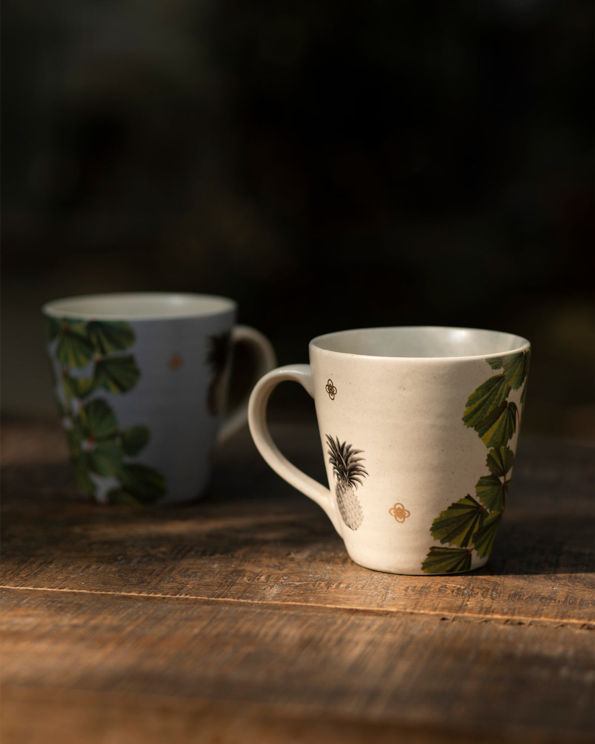 - A set of two mugs, featuring motifs picked out from the tropical landscape